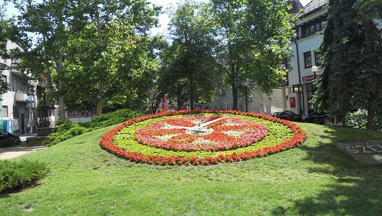 Az évek alatt lemosódott talaj dőlésszögének visszaállítása miatt idén kicsit később borult virágba a város egyik ékessége a Virágóra, de a felújítás meghozta a várt eredményt, így a fehér, piros és rozsaszín begóniák és a zöld szőnyegnövény pompázatos látványt nyújt a megújult Fő utcán. A számok hamvas cipruskákból vannak, a dátumot és a feliratot pedig a kövirózsához hasonló escheweria mutatja.
