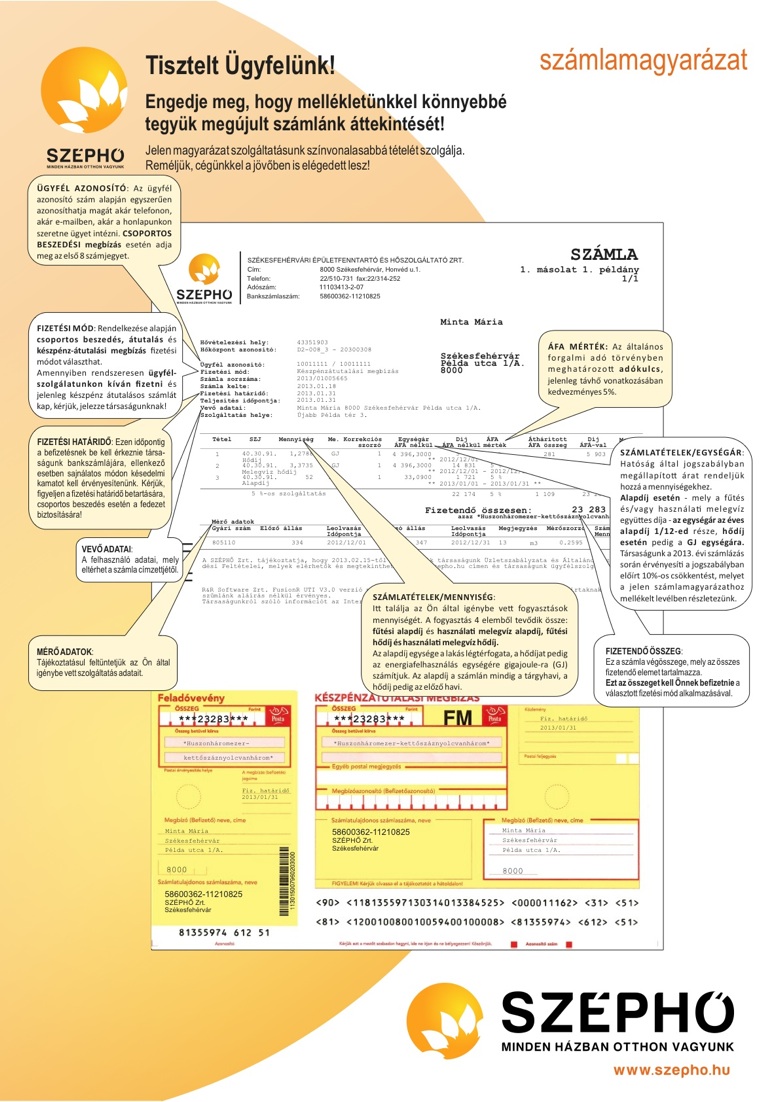 A SZÉPHÕ Zrt. a 2013. évi számlázás során, a számlákon feltüntetett összegek vonatkozásában érvényesíti a 2013 január 1-jétől előírt 10%-oas díjcsökkentést. Ennek értelmében minden lakossági fogyasztó által fizetett díj mértéke egységesen 10%-al csökkent 2013. január 1-jével a 2012 november 1-jei szinthez képest. A számlamagyarázatokat és a kísérőlevelet a március havi fogyasztást tartalmazó számlával küldik ki a fogyasztóknak.