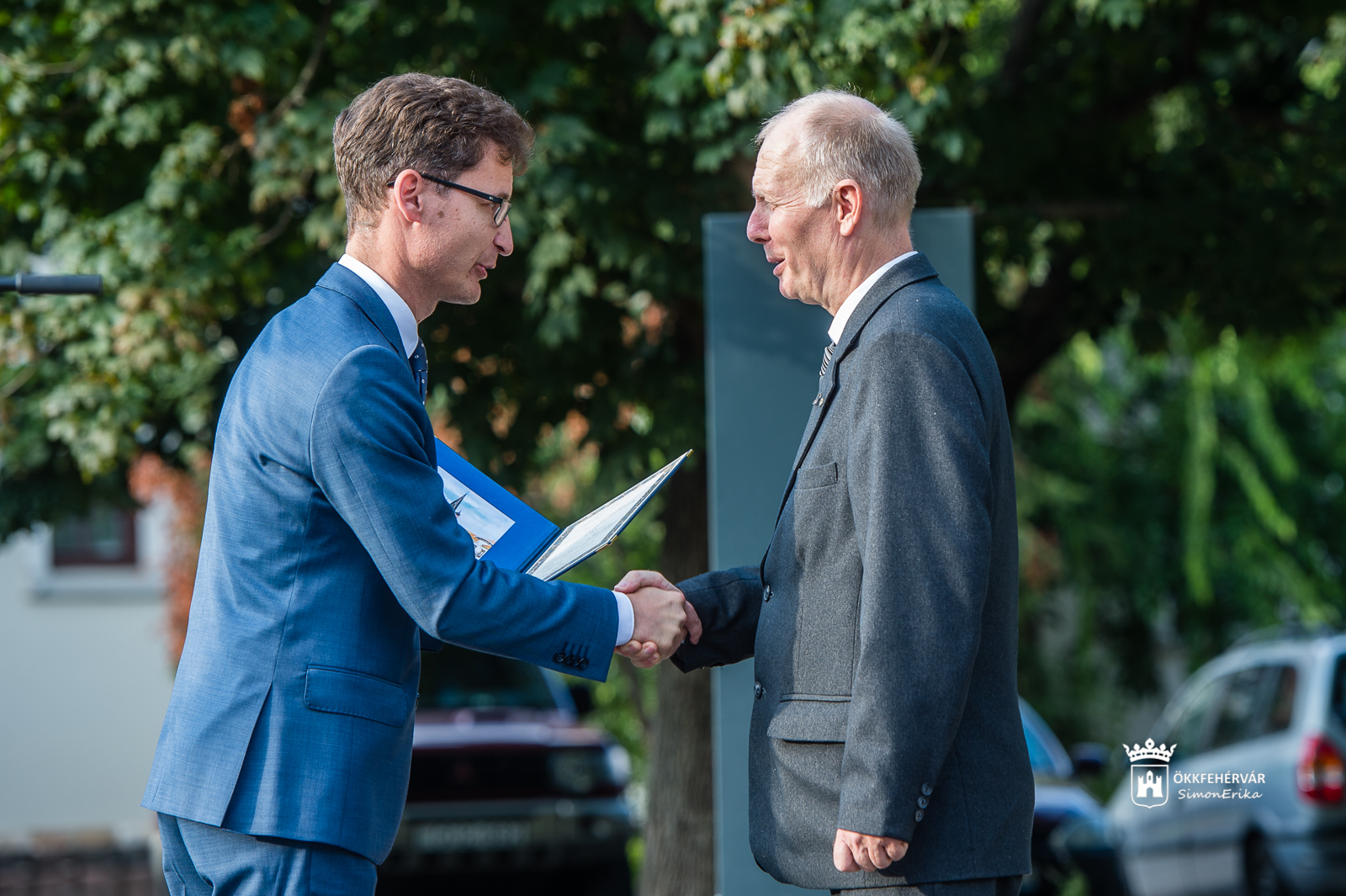 Cser-Palkovics András a város nevében emléklapot nyújtott át Bencze András lelkésznek, ezzel köszöntve a 150 éves fehérvári gyülekezetet.