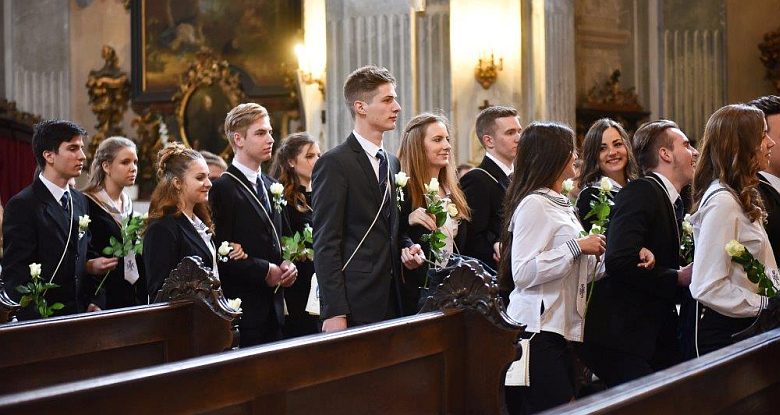 A Ciszterci Szent IStván Gimnázium végzős diákjai a Fő utcai Ciszterci templomban is búcsúztak az Alma Matertől.