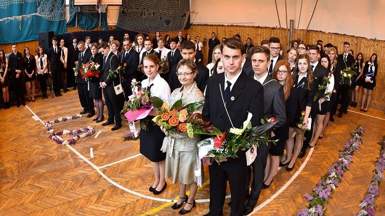 A Kodolányi János Középiskola és Kollégiumban is a tornateremben volt az idei ballagás az eső miatt.