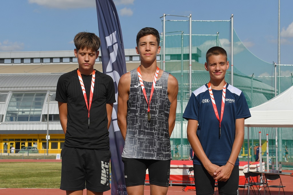 Szintén duplázott Grosz Zsombor, az U14-es korosztályban 60 méteres gátfutásban és magasugrásban is a dobogó legfelső fokára állhatott, ráadásként távolugrásban ezüstérmet érő távolságra repült, az aranyérmet ebben a versenyszámban klubtársa, Farkas Zalán szerezte meg.