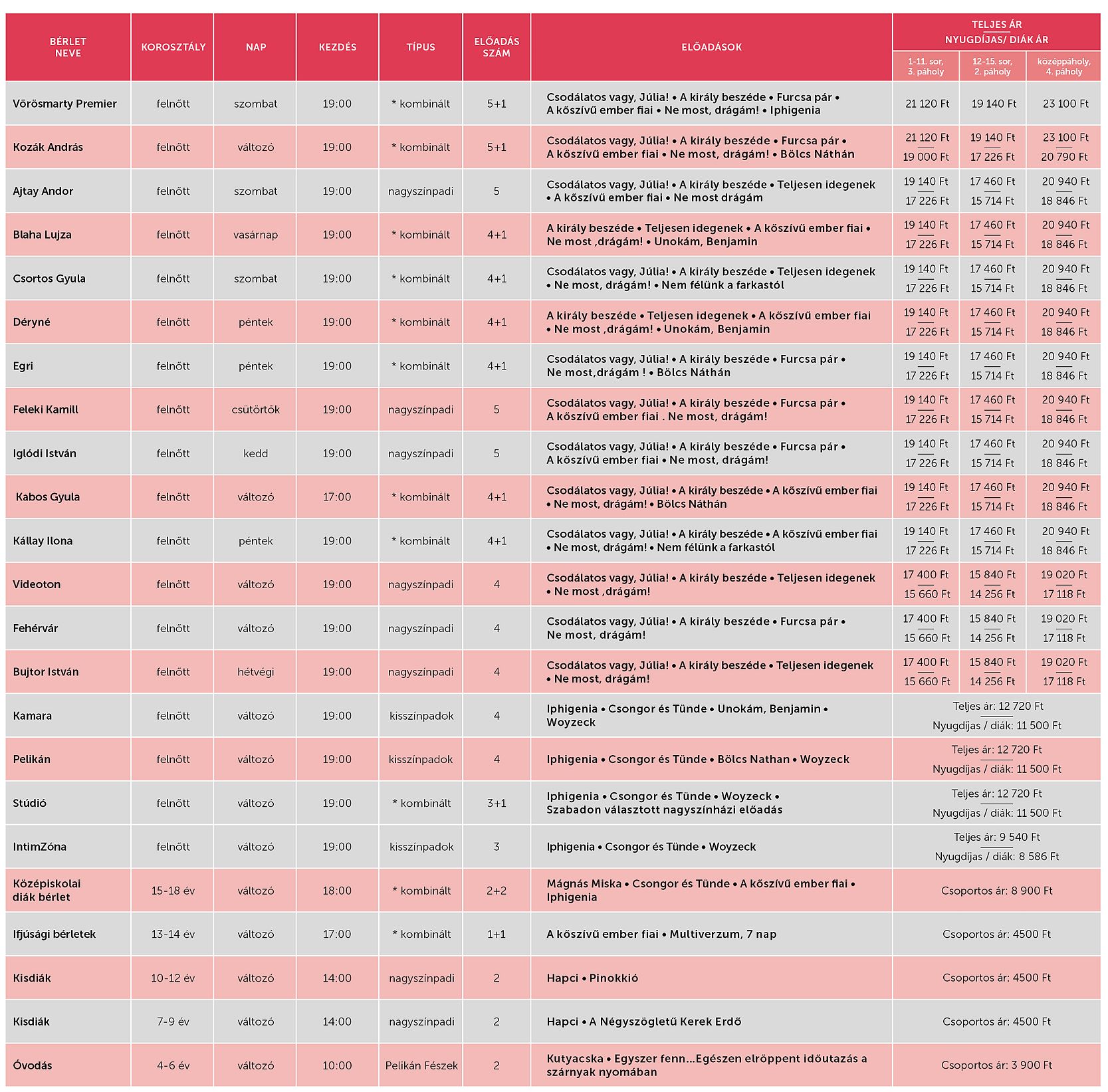 23 fajta bérletkonstrukcióval várja a nézőket a Vörösmarty Színház