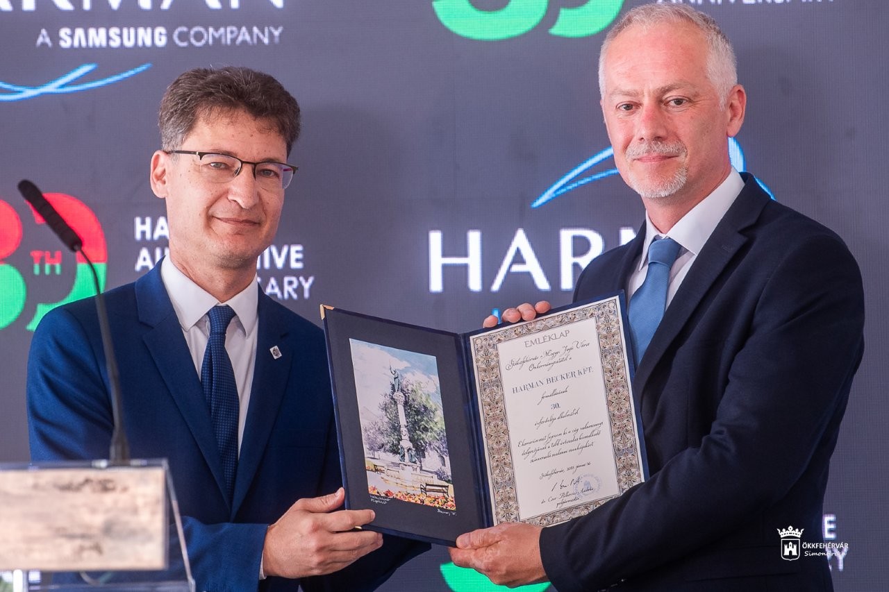 „Székesfehérvár és az agglomeráció egyik meghatározó gazdasági szereplőjét köszöntjük 30. születésnapján. A Harman sokaknak ad munkalehetőséget és nyújt modern technológiai tudást. Ennek jövőjét jelenti a szakképzéssel és az egyetemi képzéssel való fontos együttműködés. Bár a vállalati szektor soha nem annyira népszerű, de számunkra a helyi adók tekintetében szintén egy meghatározó szereplő. A cég nagyon sok forrást biztosított ahhoz, hogy Székesfehérvár közössége fejlődni tudjon, az infrastruktúrát és a környezetet fejleszteni tudjuk, hiszen e nélkül maga a gazdaság sem fejlődhet. Ez az a kölcsönhatás, ami összeköt bennünket.” – hangsúlyozta dr. Cser-Palkovics András. A polgármester a jubileum alkalmával emléklappal köszöntötte az ünnepeltet. Örömét fejezte ki, hogy a város gazdagsági, ipari szereplői, a cég partnerei jelen vannak, hiszen ők nemcsak a Harman-nal működnek együtt, hanem a várossal is, így „közösen tesszük Székesfehérvár gazdaságát erőssé és a magyar gazdaság számára is meghatározóvá.” Reményét fejezte ki, hogy azok a belépő új, nemzetközi partnerek, akik megérkeznek hazánkba, keresik majd az együttműködés lehetőségét.