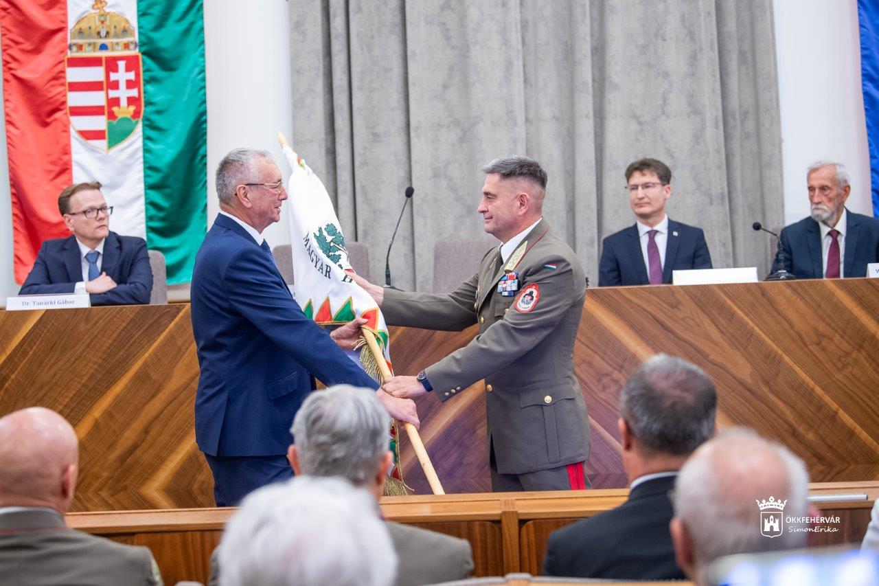 Az ünnepségen jelen volt dr. Böröndi Gábor vezérezredes, a Magyar Honvédség vezérkari főnöke, aki zászlót adományozott az évforduló alkalmából. „A zászló azt a becsületes munkát jelképezi, amelyet egy nemes eszme képviseletében végeznek. A célt, amelyet 30 évvel ezelőtt Gyuricza Béla vezérezredes és a város akkori vezetői közösen kitűztek, hogy Székesfehérvár, a civil társadalom és a Magyar Honvédség egymásra találjon, közösen, együtt dolgozva alkosson valami szépet, jót, példamutatót, és ezt megvalósították! Ez a zászló, amit ma átadtam, az eszme tárgyiasulása, és aki zászlót kap, az becsületet is.” - emlékeztetett a vezérkari főnök. A Magyar Honvédség Székesfehérvárnak sokat köszönhet. Nemcsak a parancsnokságok helyszínét, hanem azt a fehérvári szellemiséget, amely magasra emeli a zászlót. Büszkeség itt katonának lenni - hangsúlyozta.