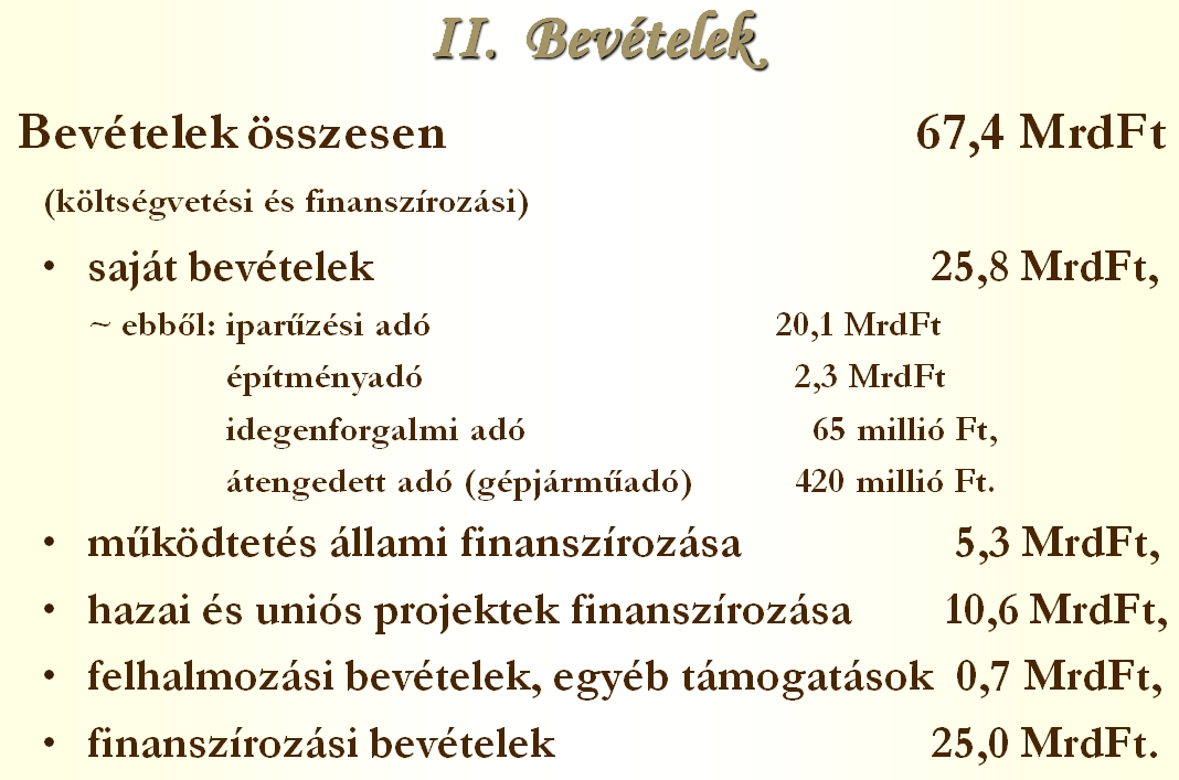 Az önkormányzat tartalékairól Cser-Palkovics András elmondta, hogy a gazdálkodási tartalék 2.5 milliárd forint, az általános tartalék 400 millió forint és az egyéb céltartalék 737 millió forint. Kiemelte, hogy hitelfelvételbe továbbra sem gondolkodik az önkormányzat és stabil a város gazdálkodása.
