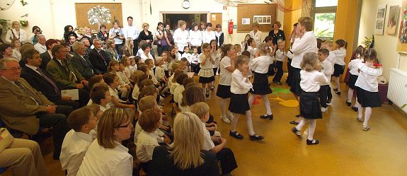 Idén ünnepli fennállásának 35. évfordulóját a székesfehérvári Gyöngyvirág Óvoda. Ebből az alkalomból ünnepi hetet tartottak az óvodában, pénteken délelőtt pedig születésnapi műsort adtak a gyerekek az intézményben. Halmai Tamásné óvodavezető kiemelte: az intézmény rendelkezik a „Zöld Óvoda” és a „Madárbarát óvoda” címmel is, hiszen a dolgozók az idegen nyelv oktatása mellett fontosnak tartják a környezettudatos nevelést is.