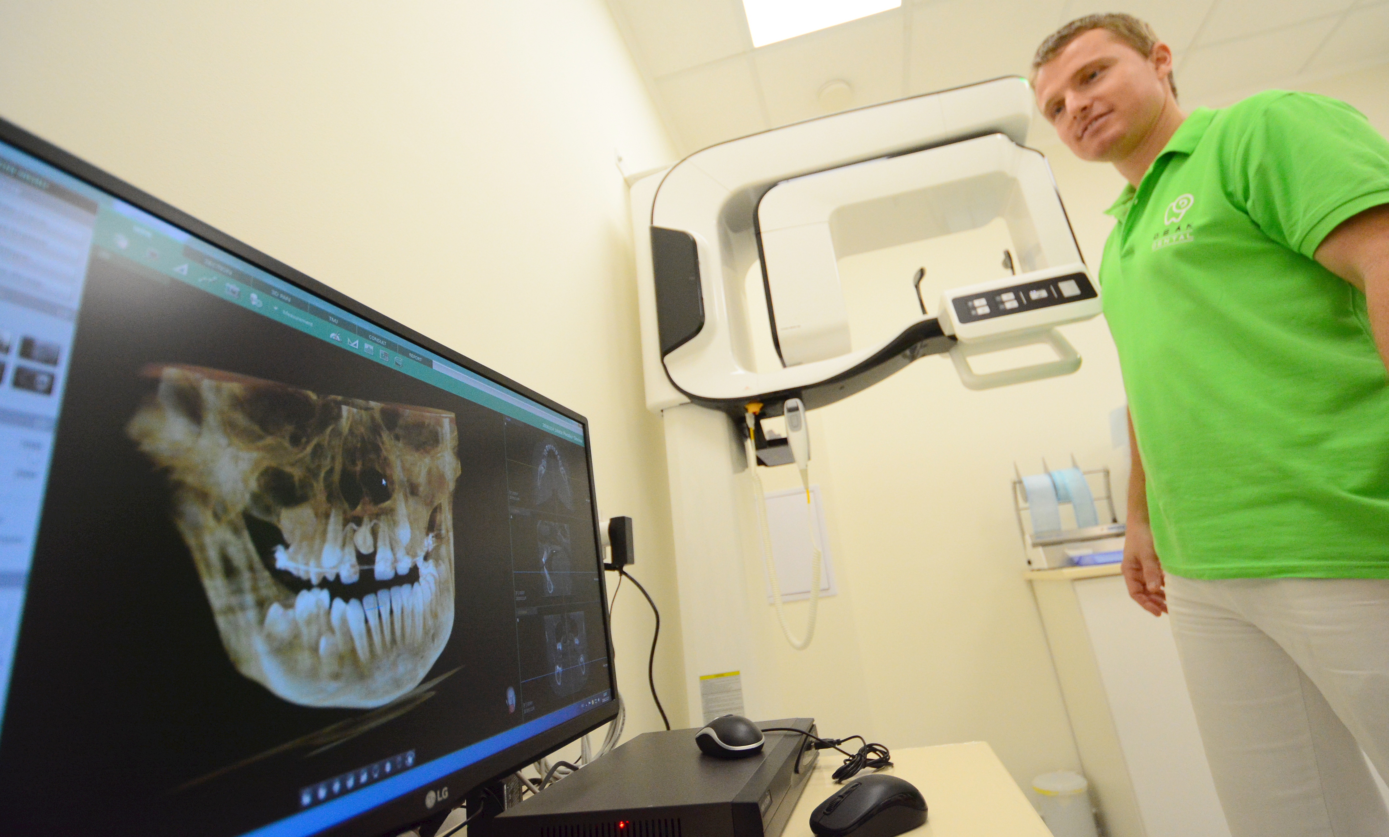 A LIFE Egészségcentrum fogászati részlegeként működő Deák Dental Fogászati Centrumban a fogorvosi radiológiai diagnosztikában forradalmi áttörést, csúcstechnológiát jelentő, úgynevezett 3D CONE BEAM CT készülékkel is találkozhatunk. A világszínvonalú berendezés segítségével háromdimenziós felvételek készíthetők az állcsontokról és a fogakról, míg a hagyományos panoráma röntgen csak 2 dimenziós képet ad.