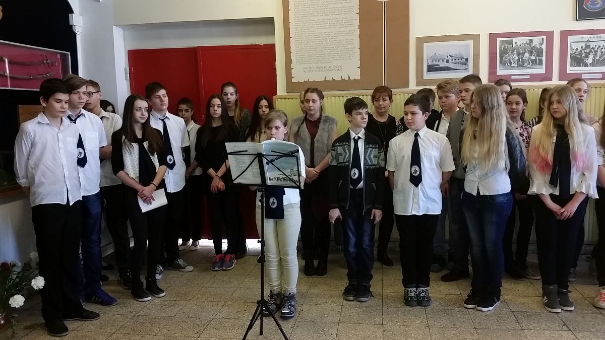 A „Tisztelgünk a '48-as hőseink előtt” című tárlaton 22 festmény látható, a képek a gyerekek fantáziáját, kézügyességét bizonyítják. A megnyitóra a diákok rövid műsorral készültek, elsőként Zalatnai Zsófi furulyán szólaltatott meg két dalt, majd Petőfi Sándor Márciusi ifjak című verse hangzott el Göbölös Fanni és Husz Bíborka előadásában.