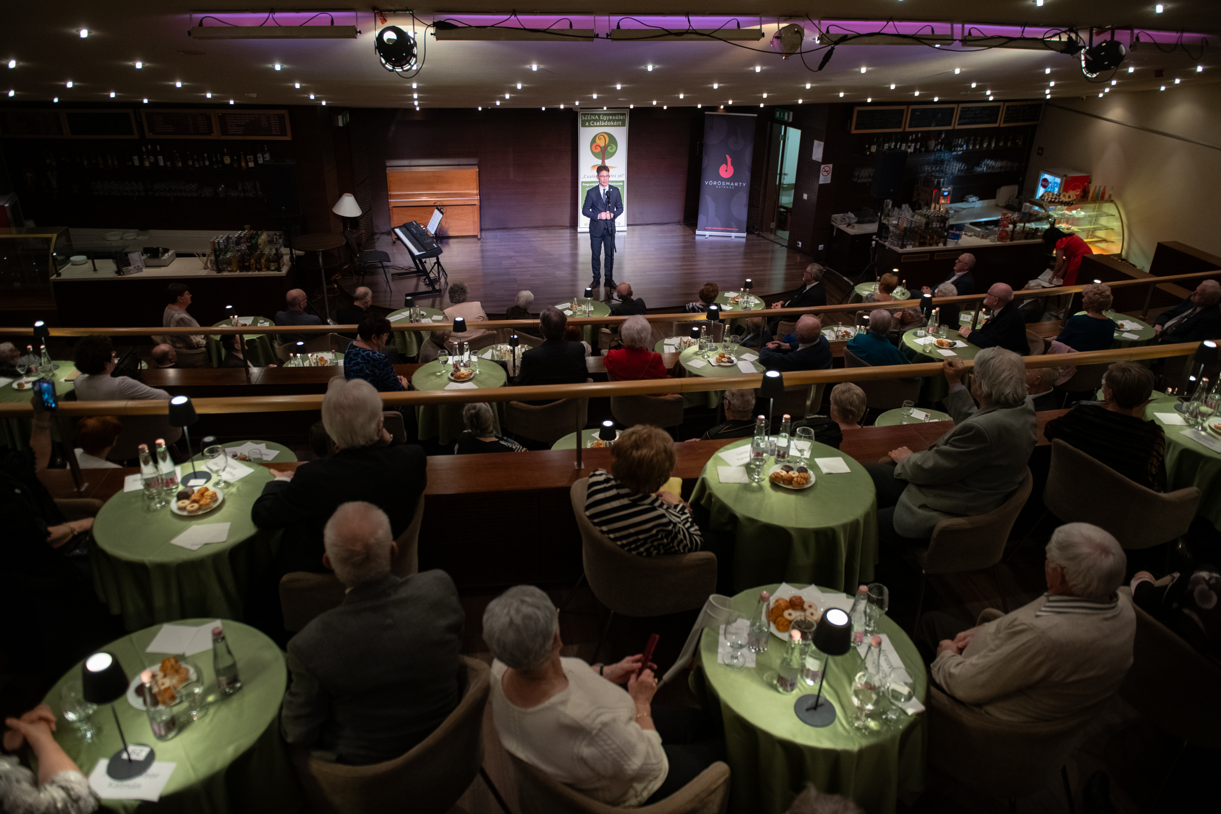„És ehhez képest kicsi lett a színház kávézója! Tulajdonképpen hagyományt is teremtettünk a kezdeményezéssel, nagy köszönet ezért Ritáéknak!” – emelte ki a város polgármestere. „Az az évszám, ami önöknél sok esetben már bőven öt évtized fölötti, nálunk 26. Ez az idő és három gyermek részbeni felnevelése annyi tapasztalatot talán már nekem is adhatott, hogy egy házasság sok-sok gyönyörű pillanatot és - mint általában az emberi élet - sok nehézséget, buktatót is tartogat. Akik itt vannak, azok arra adnak fantasztikus példát, hogy lehet az előbbiből sokkal, de sokkal több. És ezekből a gyönyörű pillanatokból kell aztán mindenkinek úgy építkeznie, hogy amikor az élet egy kicsit nehezebb, azt is sikerüljön együtt átvészelni! Önök példát adnak a saját családjuknak, de ennek a rendezvénynek köszönhetően a város szélesebb közösségének is, hogy ebben a rohanó világban, amikor nagyon-nagyon sok a kihívás, nehézség, akkor is ki lehet egymás mellett tartani, lehet a másikat megbecsülni, tisztelni, szeretni, lehet örömöt lelni abban, hogy a gyermekek megszületnek, felnőnek és aztán majd ők is megtalálják a saját pályájukat.” – fogalmazta meg az est talán legfontosabb üzenetét a városvezető.