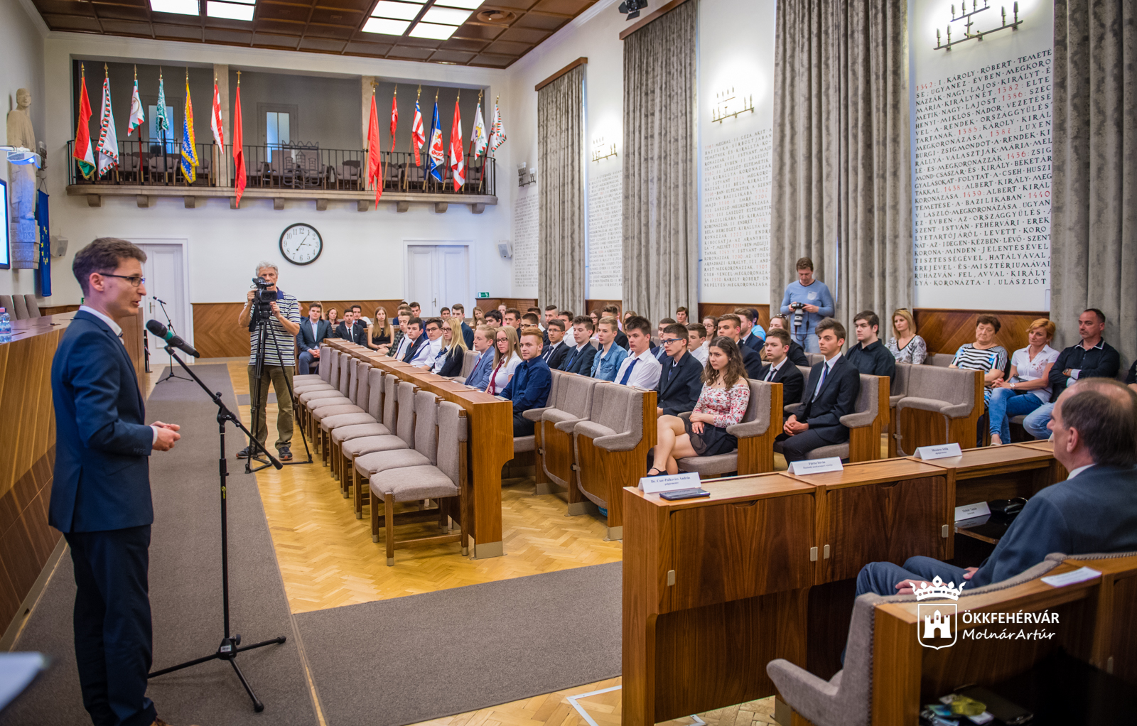 A Városháza Dísztermében délelőtt a duális információs napon telt meg végzős fiatalokkal, délután pedig az ösztöndíjas diákokkal és hallgatókkal telt meg a terem – mondta Cser-Palkovics András polgármester. „Szeretnénk folyamatosan fejleszteni az ösztöndíjat és növelni az ösztöndíjasok számát. Aki ösztöndíjat kap, büszke lehet arra, amit a tanulmányai során letett az asztalra. Abban bízom, hogy néhány év múlva kicsi lesz a Városháza Díszterme annyi ösztöndíjas lesz majd Fehérváron.” A város polgármestere hangsúlyozta, hogy kiemelt jelentőséggel bírnak a fiatalok, akik „szeretnénk, ha tudnák, hogy Fehérváron a tehetségüket megmutatva biztos jövőt teremthetnek maguknak.”