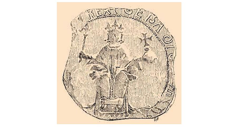 II. Géza király pecsétje. Közepén a király trónuson ülő alakja, fején a lecsüngő díszszel ékes koronával, jobbjában liliomos kormánypálcával, baljában az országalmával. A pecsét körirata: GEISA D(e)I G(ratia) (v)N(garie) (Dalmatie) (Chroatie) REX. Azaz: Géza, István kegyelméből Magyarország, Dalmáczia, Horvátország királya.