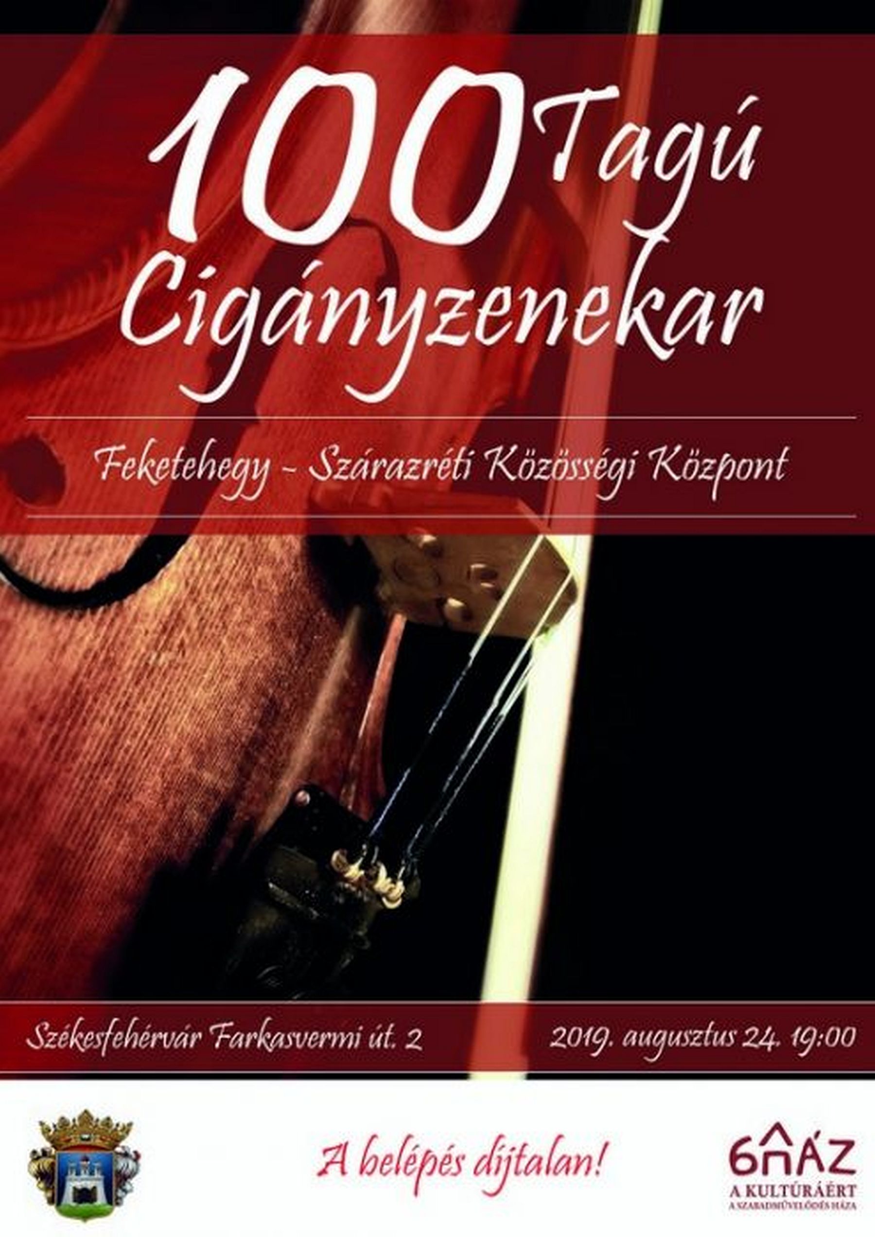 Augusztus 24-én, szombaton lesz a 100 Tagú Cigányzenekar koncertje a Feketehegy-Szárazréti Közösségi Központban. A 19 órakor kezdődő eseményre a belépés díjtalan, szeretettel várják az érdeklődőket.