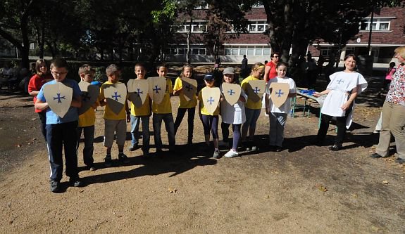 Középkori kalandozásra invitálták ma a diákokat a Széna Téri Általános Iskolában. A nagy utazás a XXI. századból a X., XI, XII. és XIII. századba vezette a gyerekeket. A kisiskolások előadásában megelevenedtek Szent István király törvénylátó napjai és számos középkori játékot is kipróbálhattak a résztvevők.