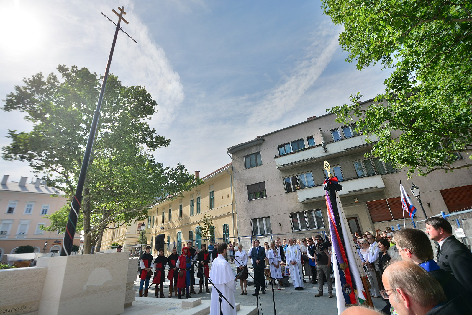 Székesfehérvár Önkormányzata nevében Róth Péter alpolgármester köszöntötte a megjelenteket. Elmondta: „Sokan vannak a világban, akik úgy gondolják, hogy a múltba révedés hóbortja járja be Kelet-Európát, annak népeit, és úgy vélik, hogy ez semmi jóra nem vezet. Én másképp gondolom! Hiszem azt, hogy a 20. század sötétségéből a gyógyulást nem a feledés fogja elhozni. Sokkal inkább az a gyógymód, hogy merünk büszkék lenni a gyökereinkre! A természet igazsága, hogy a mély gyökér magas fát enged felnőni. Nekünk nagyon mély gyökér adatott, amire büszkék lehetünk! Az, hogy Székesfehérváron ismét állni fog az Országzászló, nem a közhatalmat gyakorlók hóbortja, hanem a társadalomban meglévő igény. Azért lehetünk ma itt, mert a társadalomban van egy természetes öngyógyító reflex, a 20. századból való kigyógyulás reflexe!”
