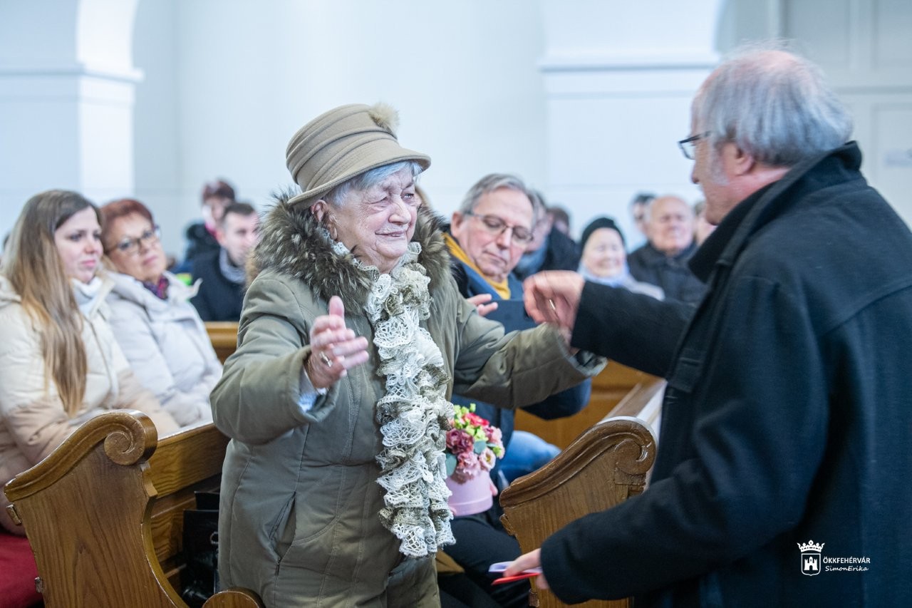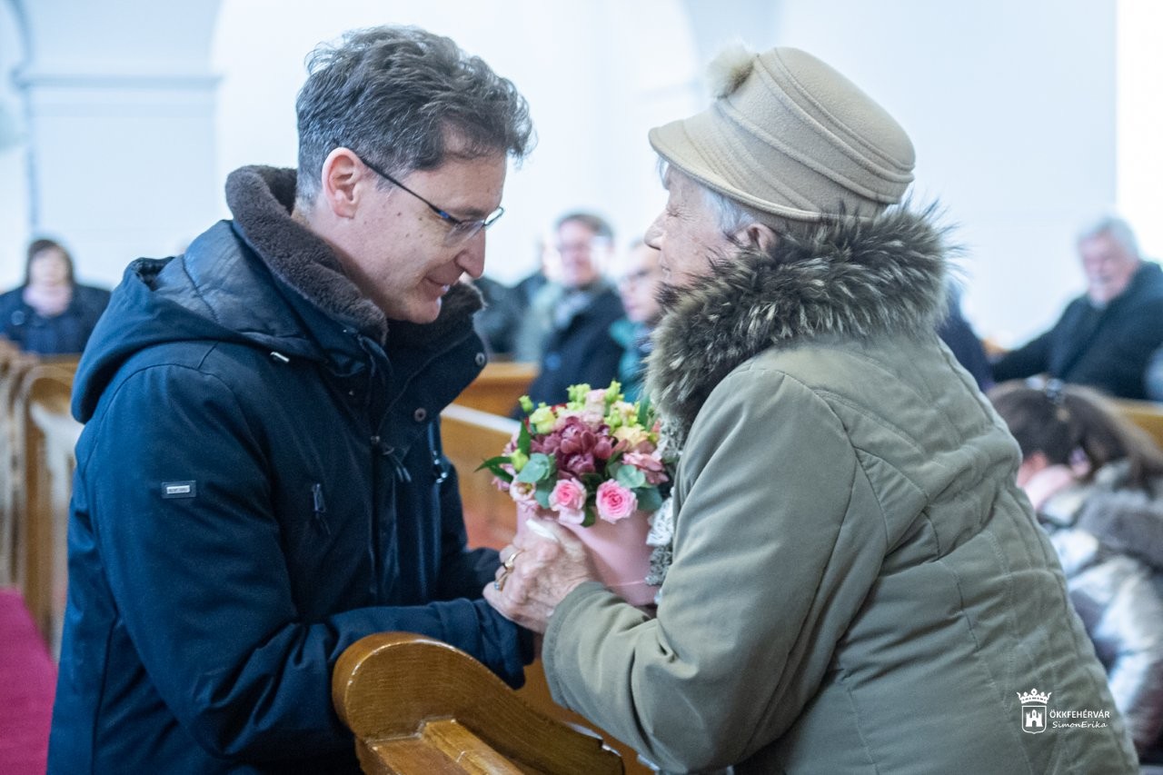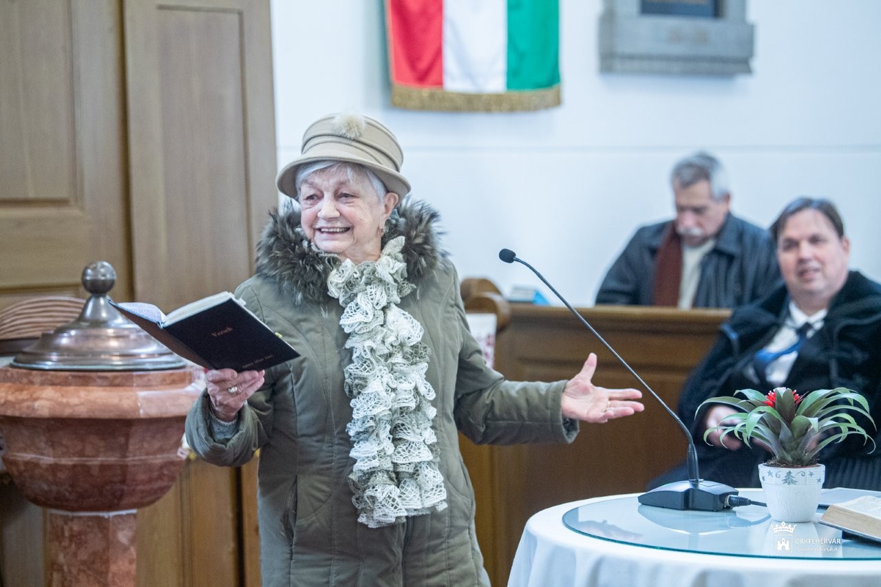 „Amikor Eszti néni verset mond és ad át, akkor valójában szeretetet ad át! Fogadjuk el ezt a szeretetet, s vigyük ezt haza az imádság mellett. Mert ha így éljük a mindennapokat, akkor bármi is forrong a világban, mi itt békességben élhetünk egymással!” – fogalmazott Székesfehérvár polgármestere.