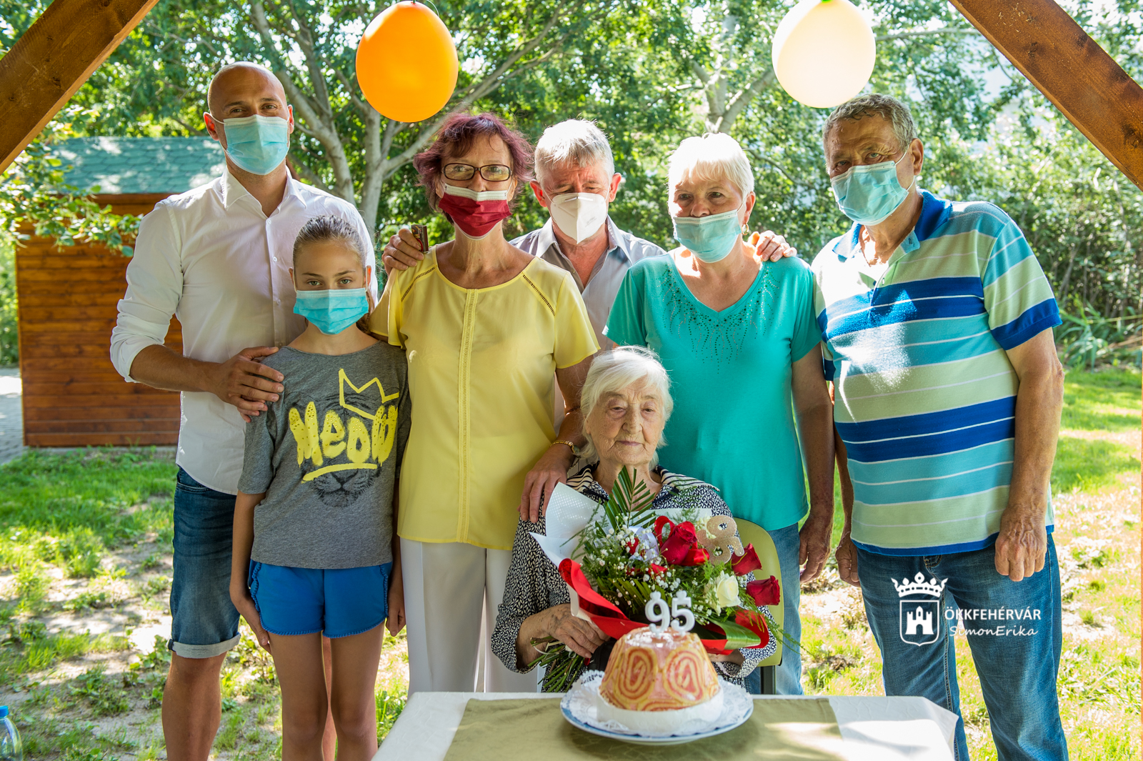 A 95 éves Haár Lajos Lászlónét köszöntötték a Farkasvermi úti idősotthonban