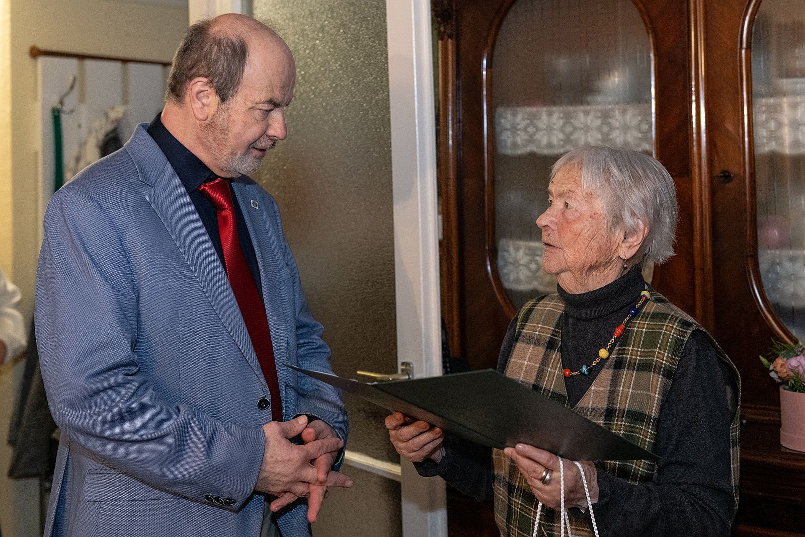 A 95 éves Molnár Dezsőnét, Áron Nagy Lajos hagyatékának őrzőjét köszöntötték