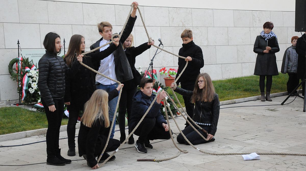 Az ünnepi műsorban az intézmény nyolcadikos osztályos tanulói elevenítették fel a hatvan évvel ezelőtt történt eseményeket. A műsorban a fővárosi történéseken kívül a vidéki, így a Székesfehérváron történt eseményekről is megemlékeztek. A székesfehérvári forradalom a diákság követeléseivel, tüntetéseivel kezdődött el. A legmegdöbbentőbb esemény október 24-én, este hét óra körül történt, amikor a tömeg a Belügyminisztérium fehérvári épülete elé ért. A Vörös Hadsereg útonálló épülete egyben az Államvédelmi Hatóság székhelye is volt. Ekkor a provokátorok részéről lövések dördültek, ez volt a jeladás, majd az odaérkező szovjet páncélosok a tömegbe lőttek.