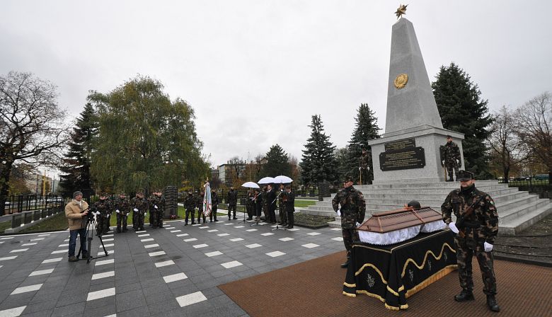 A Béke téren temették újra a Kisfaludon hősi halált halt 73 egykori szovjet katonát