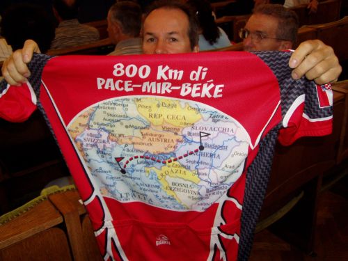 Pénteken délelőtt a Városháza nagytermében fogadta Székesfehérvár városa azt a 19 kerékpárost, akik Centoból, Székesfehérvár olasz testvérvárosából érkeztek. Útjuk során 800 kilométert tettek meg a békéért biciklizve Olaszországból indulva Szlovénián és Horvátországon keresztül Magyarországig.