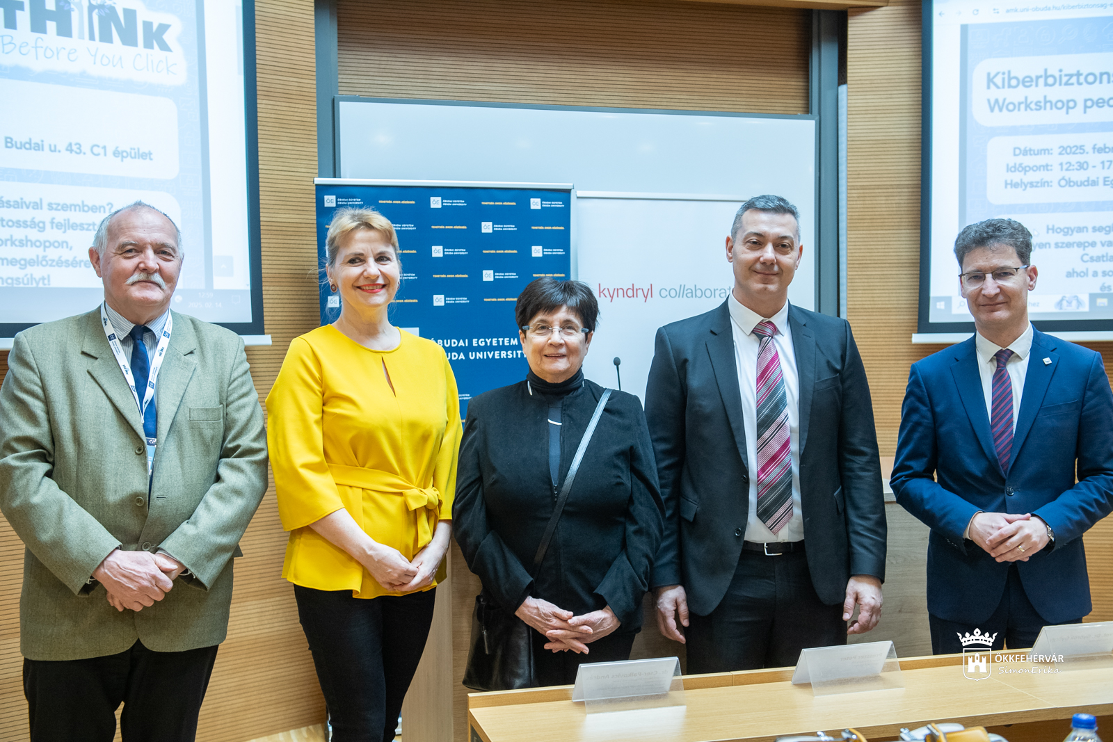 "Átszövi a mindennapjainkat a kiberbiztonság témaköre, és a mi felelősségünk az, hogy jó válaszokat adjunk ezekre a kihívásokra!" - mondta el köszöntőjében prof. dr. Györök György, az Óbudai Egyetem Alba Regia Kar dékánja, és köszönetét fejezte ki az oktatóknak, hogy "felvették ezt a fonalat, és ebből egy nagyon jó tananyagot fejlesztettek, ami minden szintű oktatás számára nagyon fontos lesz."