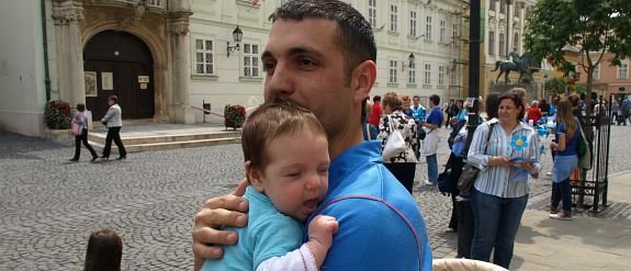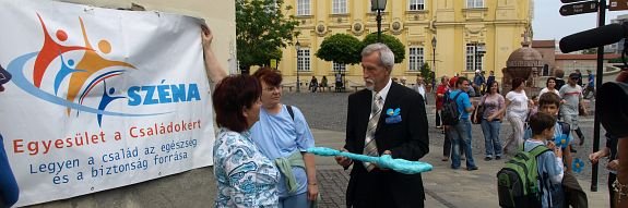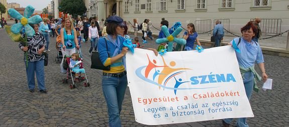 Az Országalmától indult családi felvonuláson kék virágot adtak a járókelőknek, családoknak a Széna Egyesület aktivistái, ezzel hívták fel a figyelmet a családi élet értékeire.