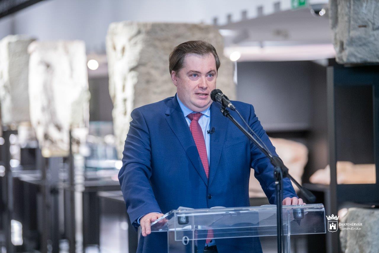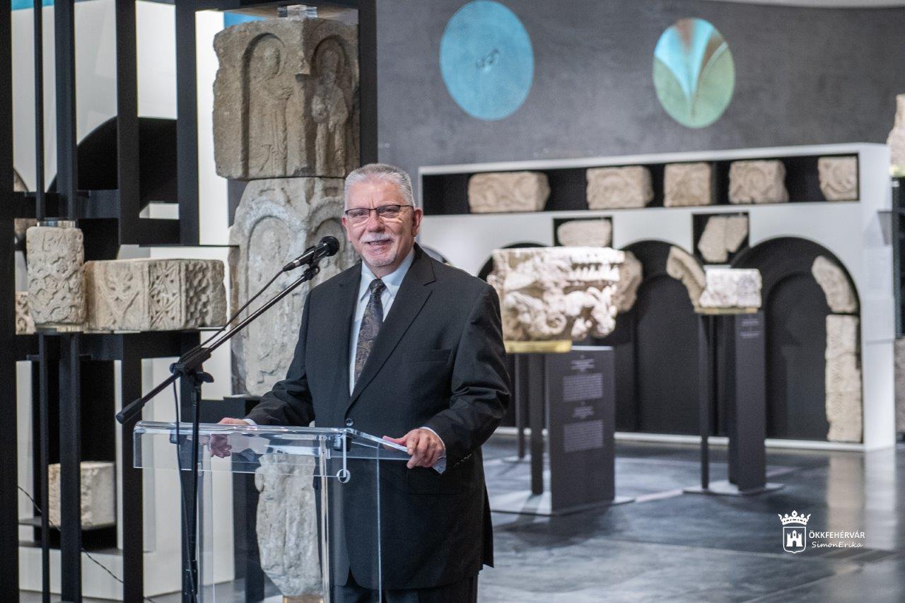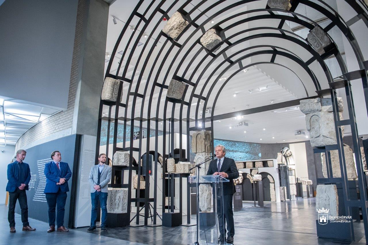 Székesfehérvár alpolgármestere kiemelte, olyan helyen állunk, ahol egy hajdani templomból összegyűjttetett mindaz, ami szétdobáltatott az idők során. Egy olyan kiállítást nyitunk most meg, amely ezt a templomot a legnagyobb, legszebb állapotában idézi meg. „Ha csak hagyjuk megtörténni, hogy egy minden értelemben felépült kultúra felszámolja saját magát, nem vagyunk igazából mérhetetlenül felelőtlenek? Ha csak hagyjuk, hogy az ország origója egy gödör legyen, ne pedig egy torony, akkor vajon fogjuk-e valaha felemelni a fejünket, és az égre tekinteni?” – tette fel a kérdést Székesfehérvár alpolgármestere, aki kiemelte, „küldetésünk van az összegyűjtésre, az építésre. Lépjünk túl a pusztuláson és alkossunk teret! Hittel, hogy felemel, reménnyel, hogy van jövő és szeretettel, hogy minden ember javára váljon.”
