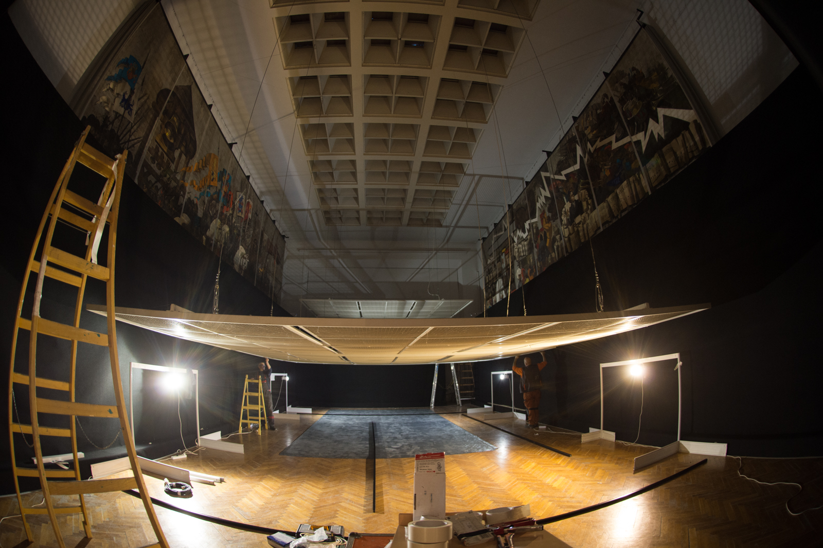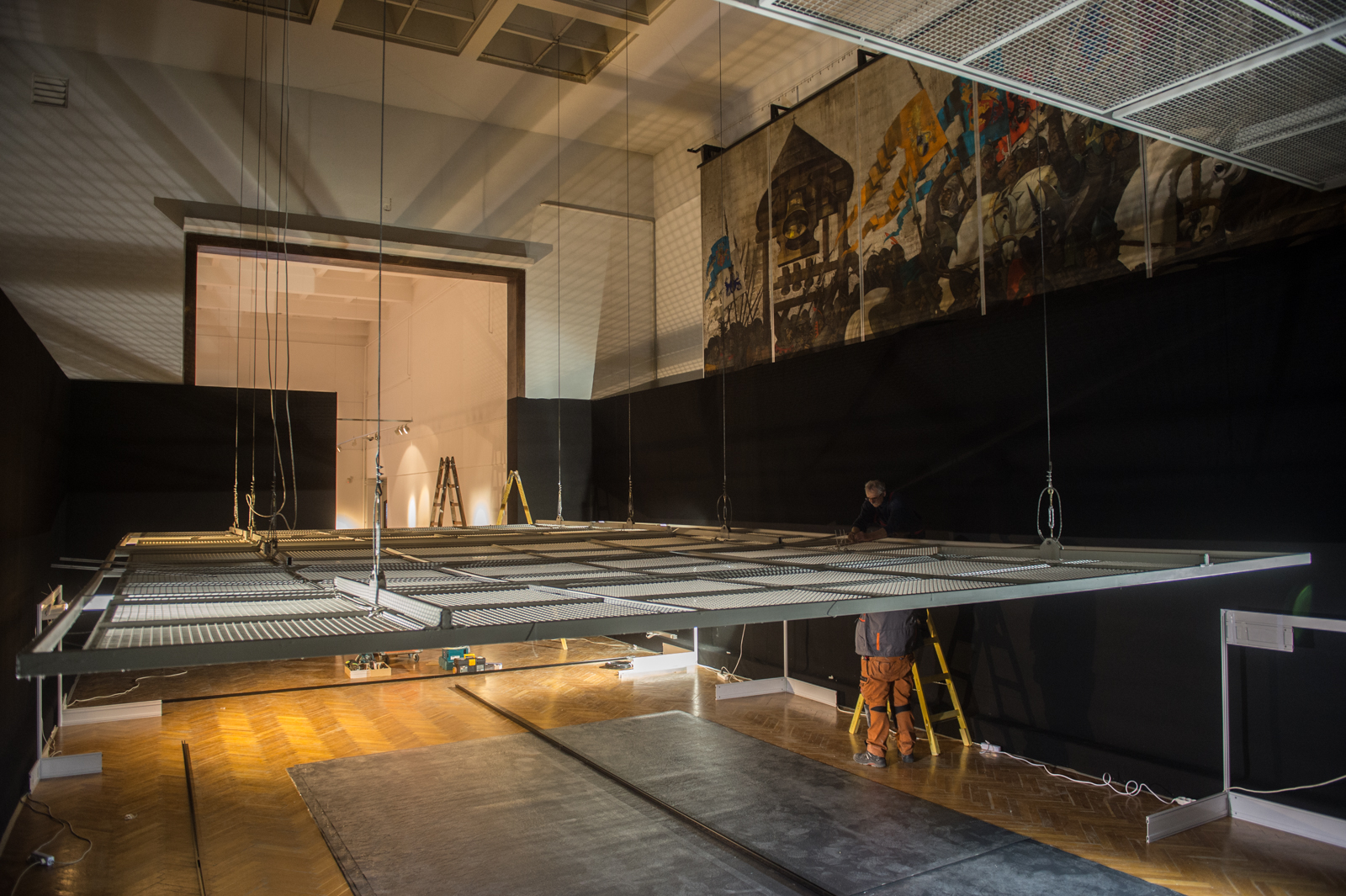 A nagyteremben, ahol Aba-Novák Vilmos táblafestménye látható, fekete borítású teret építenek, a falakat fekete, puha textillel vonják be. A készülődésből is sejthető, hogy a fényeknek, a világításnak nagy szerepe lesz a tárlat megalkotásában.