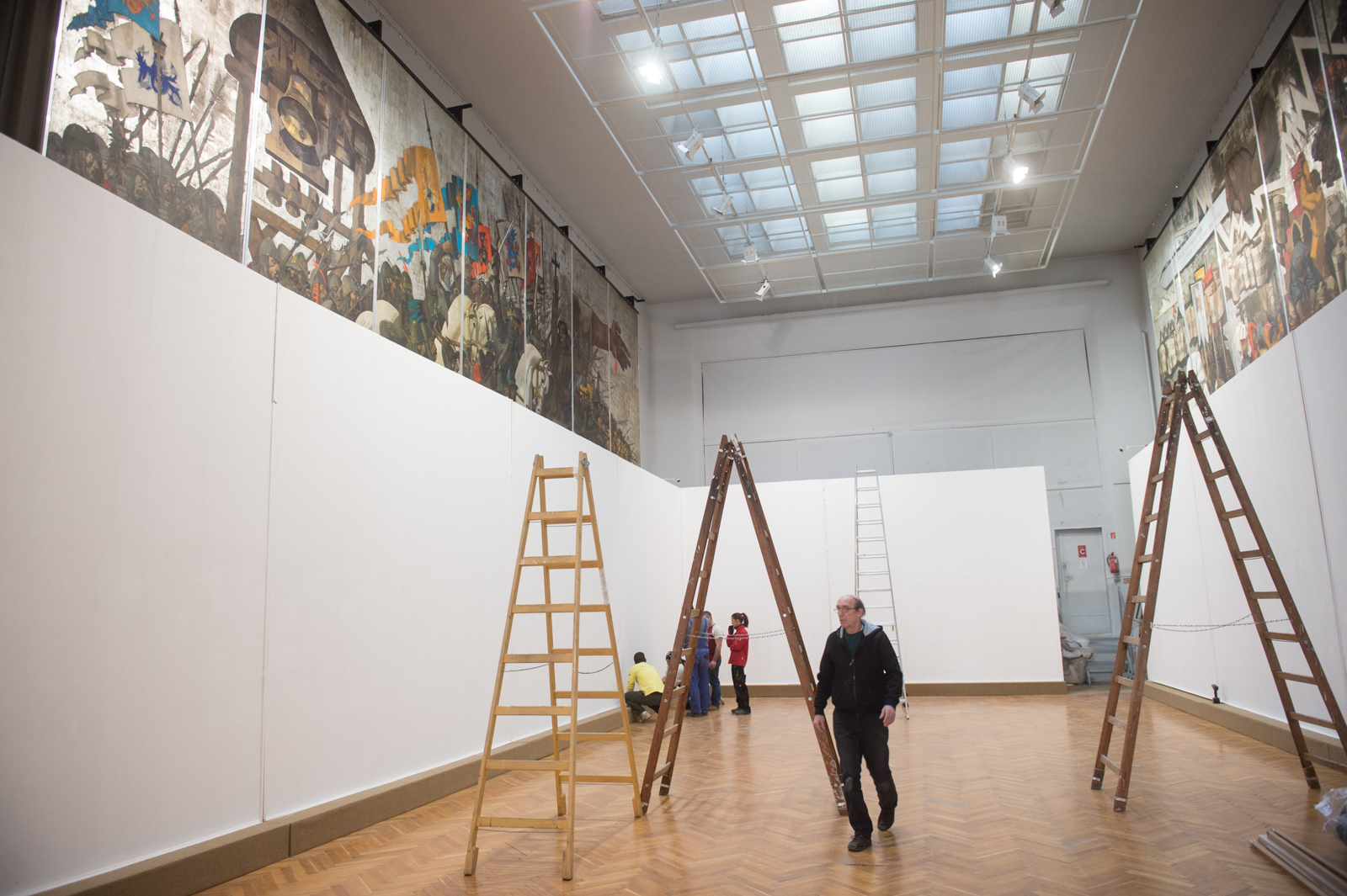 A Csók István Képtárban a földszinten, az emeleti előtérben és a nagyteremben is folynak a munkálatok: a Szent István Király Múzeum grandiózus kiállítására készülve A DÖNTÉS című tárlatot készítik elő.