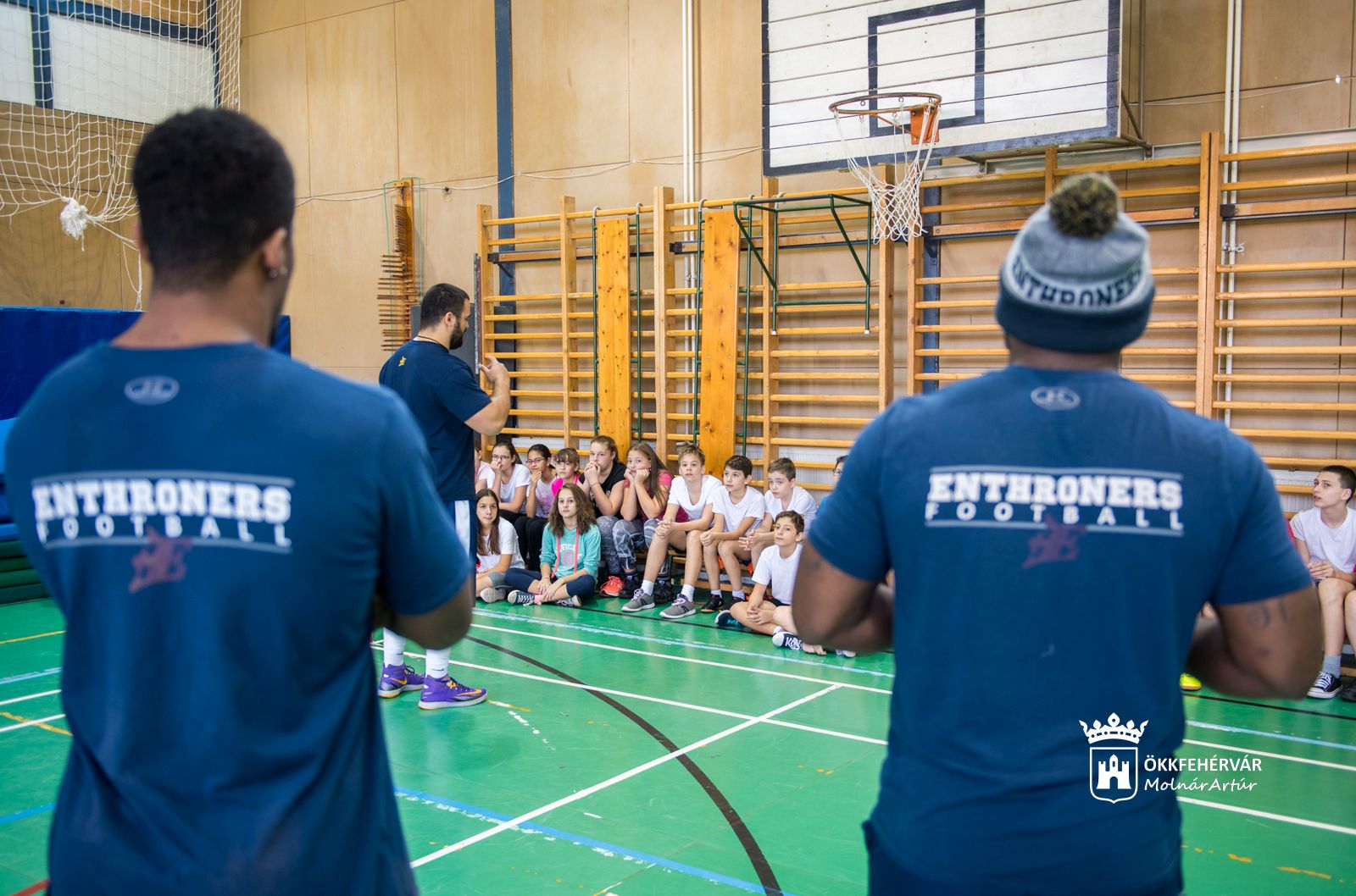 Az István Király Általános Iskolában egész délelőtt specieális testnevelés órák zajlottak. Az osztályoknak a Fehérvár Enthroners három játékosa, Papp Péter, Antonio Roane és Jebrai Regan tartott bemutatót, ami valójában interaktív ismerkedés volt a tojáslabdás focival.