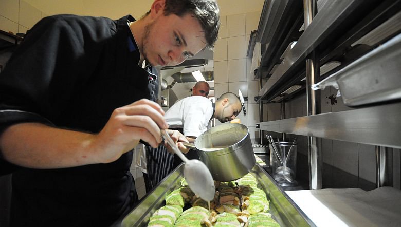 A 67 konyháját jelenleg Tivadar György, a Michelin-csillagos Costesből érkezett séf vezeti, aki elmondása alapján sokkal otthonosabban érzi magát a tűzhely és a tálalópultok között, mintha egy asztal mögött újságírói kérdésekre kell válaszolnia. Az egyik húsos díszítése közben a fiatal séf elmondta, a konyhán összesen öten dolgoznak, és a maga 28 évével jelenleg ő a legidősebb szakács. A fiatal séf megjegyezte, mindig friss alapanyagokat használnak. Ha például valaki kér egy tatár bifszteket, akkor amint beérkezik a rendelés, a szakácsok csak akkor kezdik darabokra vágni a húst, mert az ételnek csak így lesz olyan az íze, mint amilyennek a nagykönyvben meg van írva.