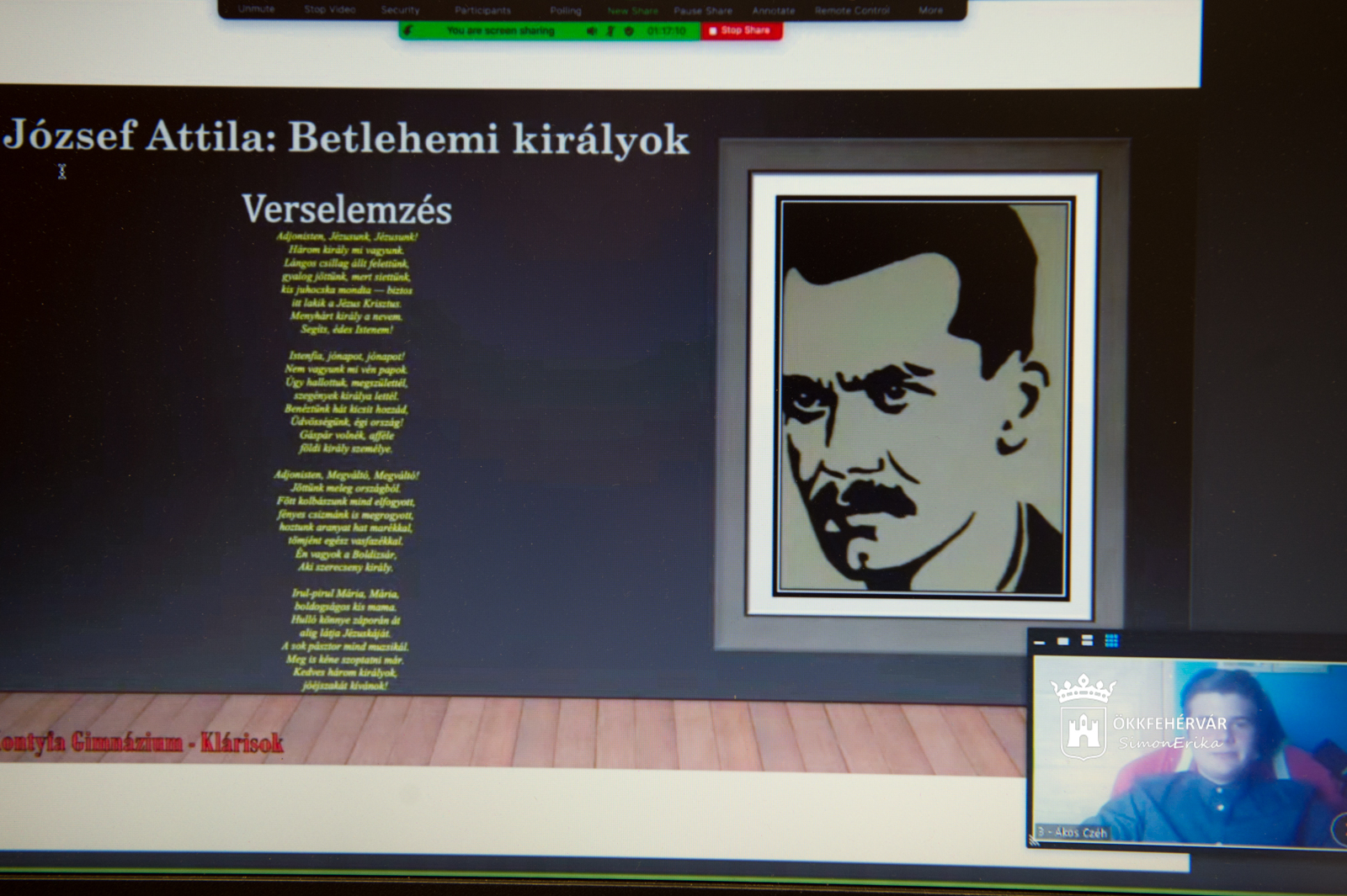A köszöntőket követően elkezdődött a döntő, amelynek során a csapatok bemutatták az általuk készített, egy József Attila verset feldolgozó elemzést. Az ötperces előadásokat követően három képről kellett kitalálni egy-egy, a költő által írt vers címét, majd a döntő zárásaként a csapat által választott verset szavalták el. A Székesfehérvári SZC Bugát Pál Technikum Átlátszó oroszlánok csapata nyerte a „Költőnk és kora” vetélkedőt. A második helyen a Sárbogárdi Petőfi Sándor Gimnázium Petőfi gyermekei, a harmadik helyet az Elemzők, a Móri Táncsics Mihály Gimnázium diákjai végeztek. A Tóth László-díjat a Pápai SZC Reguly Antal Szakképző Iskola és Kollégium Lázadó Attilkák csapatának ítélte oda a zsűri.
