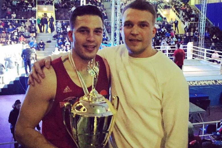 Hegyi Barnabás, és tesvére Ádám, aki egyben legynagyobb szurkolója is - valamint a bajnoki serleg.Hegyi Barnabás jelenleg a budapesti Vasas-Süllős igazolt versenyzője, de Székesfehérváron lakik, és részben itt is készül. Míg a fővárosban Ráth Miklós és Barta Zsolt edzéseit látogatja, addig Fehérváron Moldicz Tamás segíti a felkészülését. Az 75kg-os magyar bajnok idén a megszerzett aranyérem mellett egy másik „dolgot” is kihúzhatott a bakancslistájáról: nyáron 12:54 óra alatt teljesítette a nagyatádi Ironmant. „Úszni és futni minden bokszoló szokott amúgy is, de a kerékpár is sokat tud segíteni, hiszen amellett, hogy javítja az állóképességet, a súlyomat is segít karban tartani. Nagyon rég óta szerettem volna megcsinálni az Ironmant, és mivel nyáron volt rá időm, odaálltam a rajthoz. De ezzel még nincs vége, jövőre is teljesíteni akarom!”