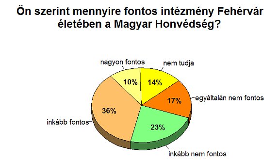 Az adatfelvételre még tavaly ősszel került sor: a kérdezőbiztosok véletlenszerűen kiválasztott 500 emberrel készítettek interjút, személyesen, standard kérdőívek segítségével. A felmérésből kiderült, hogy a fehérvári felnőtt lakosság 46 százaléka szerint nagyon vagy inkább fontos Székesfehérvár életében a Magyar Honvédség, 23 százalékuk szerint inkább nem fontos, 17 százalékuk szerint pedig egyáltalán nem fontos intézmény a város életében. Arra a kérdésre, hogy miért gondolják fontosnak, vagy kevésbé fontosnak a Magyar Honvédséget Székesfehérvár életében, többféle válasz érkezett. Többen úgy vélik, hogy fontos, hisz a városban található a Magyar Honvédség egyik országos központja, ezen felül munkahelyet ad, segít a rendőrségnek, biztonságérzetet nyújt, valamint a történelem része is, hagyománya van a városban. Kritikák is megfogalmazódtak, többek szerint csak a pénzt emészti fel, mivel már nincs sorozás, így jelentősége és szerepe sincs a városban. A lakosok több mint fele szerint a helyi önkormányzat összességében megfelelő mértékben foglalkozik a Honvédséggel, csupán 2 százalékuk szerint túl sokat, illetve 17 százalékuk véleménye alapján túl kevés figyelmet kapnak a városban élő katonák.