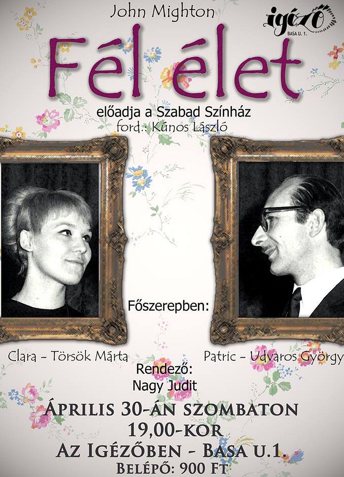 Szombaton este 19.00 órától újabb kulturális programra várnak minden érdeklődőt az Igézőbe (Basa utca 1.). A közkedvelt közösségi John Mighton: Fél élet című darabját tekinthetik meg az érdeklődők a Szabad Színház előadásában. A Nagy Judit által rendezett darabban két idős ember története fonódna újra egymásba, és folytatódna onnan, ahol évtizedekkel ezelőtt, a világháború miatt megszakadt.