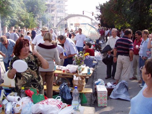 Lassan elkészültek is az első lecsók a Fehérvári Ifjúsági Fúvós Együttes zenéjére és az első csapatok a zsűri elé járultak művükkel. Sokan neki láttak az evésnek és legtöbb csapat járókelőket és hajléktalanokat is megvendégelt az asztalánál. Szerkesztőségünk főztjét fél háromkor vitte zsűriztetni a főszerkesztő, de sajnos annak ellenére, hogy akik asztalunknál ettek mind azt mondták, hogy éppen a nyertes lecsóból esznek (most főztünk először), csak negyedikek lettünk mint két másik szomszédunk is... A Lecsó királynő késő délután már boldogan vonult végig koronájában és új bográcsával a Várkörutún és boldogan jelentette, hogy lemondja a zalakarosi hétvégét mert helyette Görögországba mennek a nyereményútjukra.