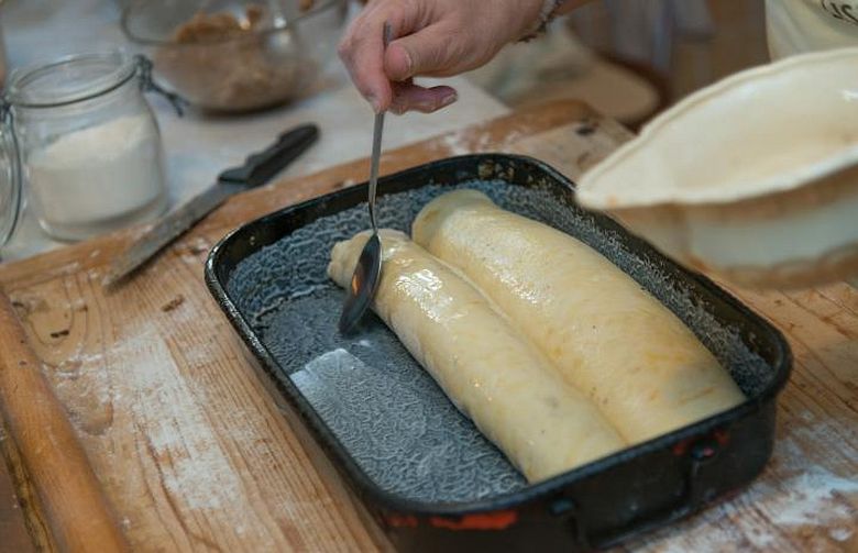 „A recept réges-régi, még az édesanyám tanított meg rá. Már kívülről fújom, annyiszor sütöttem az elmúlt harmincöt évben. A gyerekek és az unokám is nagyon-nagyon szeretik, bár mondjuk mazsolát nem teszek bele, mert azt mindig kipiszkálják a töltelékből” - mesélte Marika néni, majd megmutatta a konyharuhával lefedett tésztagombócot.