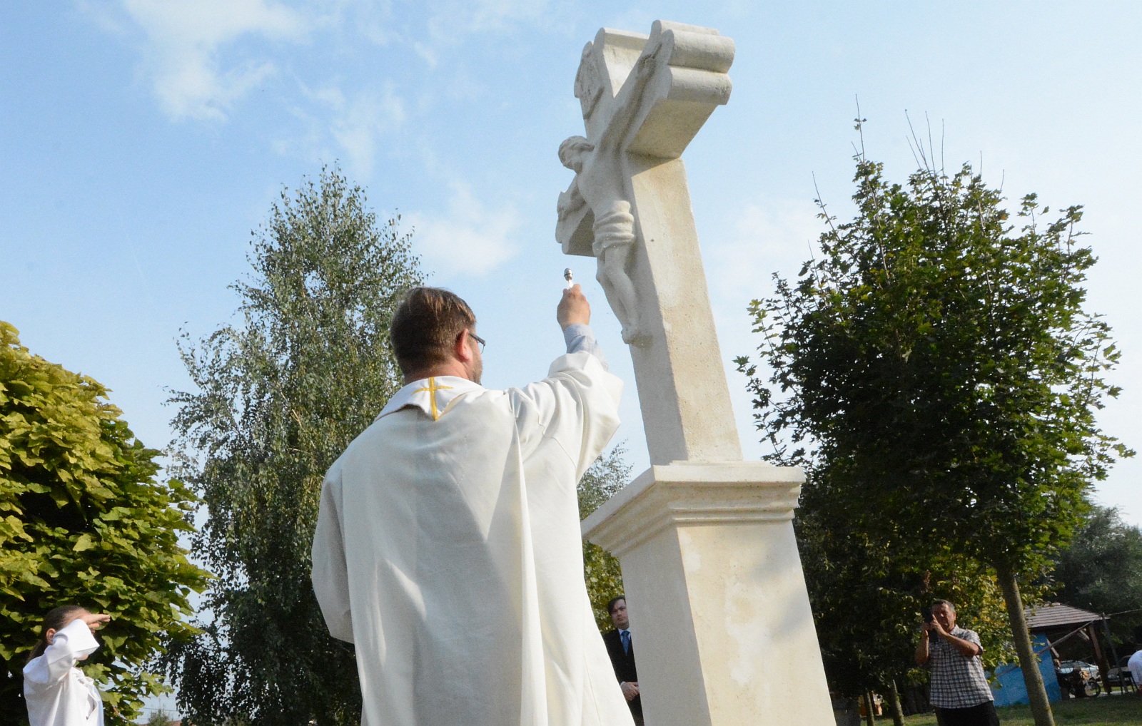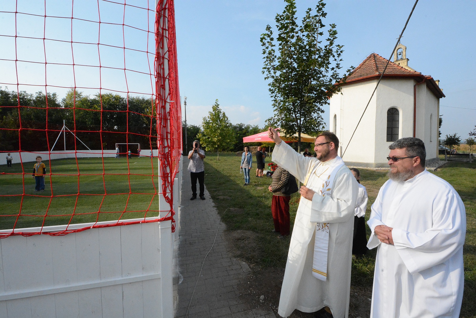 A felújított keresztet és az új focipályát is megszentelték vasárnap délután Börgöndön