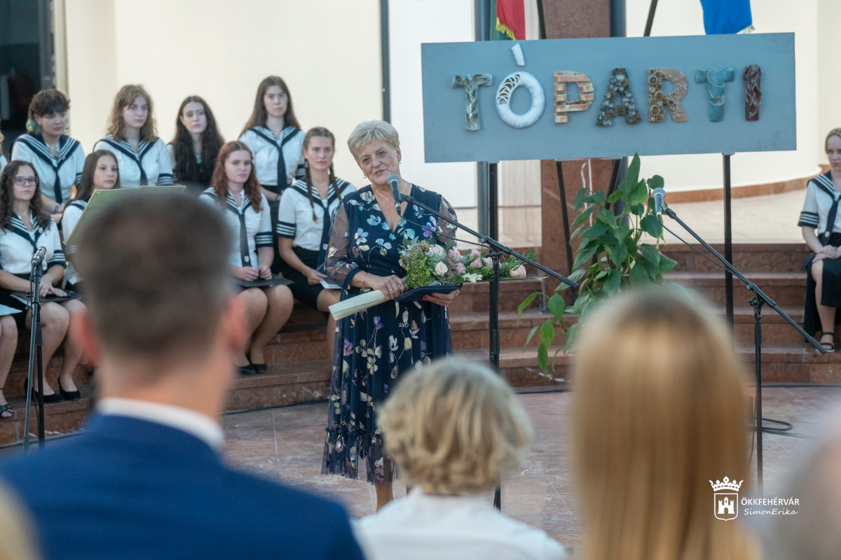 „Székesfehérvár ősi iskolaváros. Sok-sok ezer fiatalnak innen indult a pályája, karrierje. Nekik ez a város az otthonuk, ide kötik őket a gyökereik. Még akkor is, ha sorsuk, élethelyzetük máshova is vezérelte őket. Az alapokat itt kapták. A város iskoláiban, ahol mindig példaértékű nevelő- és oktatómunka folyt. Ennek megőrzése és továbbvitele a ma nemzedékének feladata és felelőssége! Tiszteljük tanár elődeinket, legyünk büszkék városunkban végzett tanítványainkra, őrizzük meg Székesfehérvár iskolavárosi hagyományait, s tegyünk meg mindent annak érdekében, hogy mai diákjaink legalább olyan sikeresek legyenek, mint az előttük járó nemzedékek. Indítsuk ezen gondolatokkal és célokkal az új tanévet!” – hangsúlyozta a Tóparti főigazgatója.