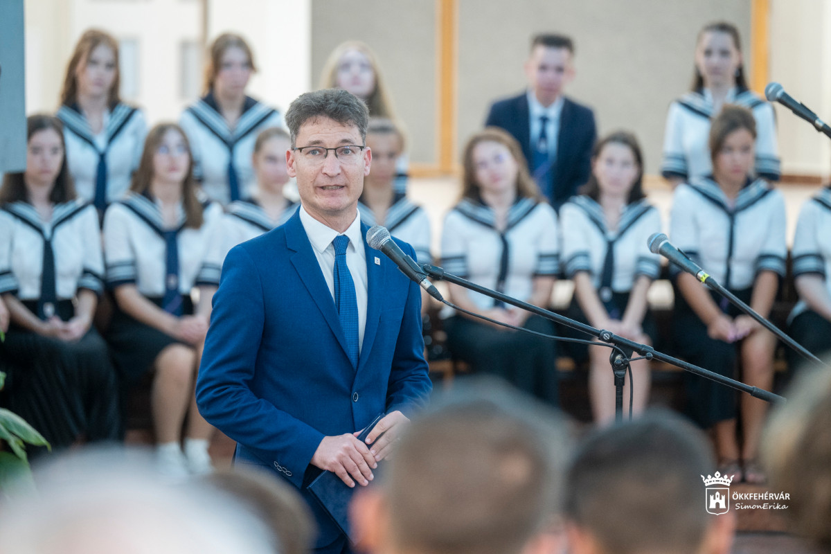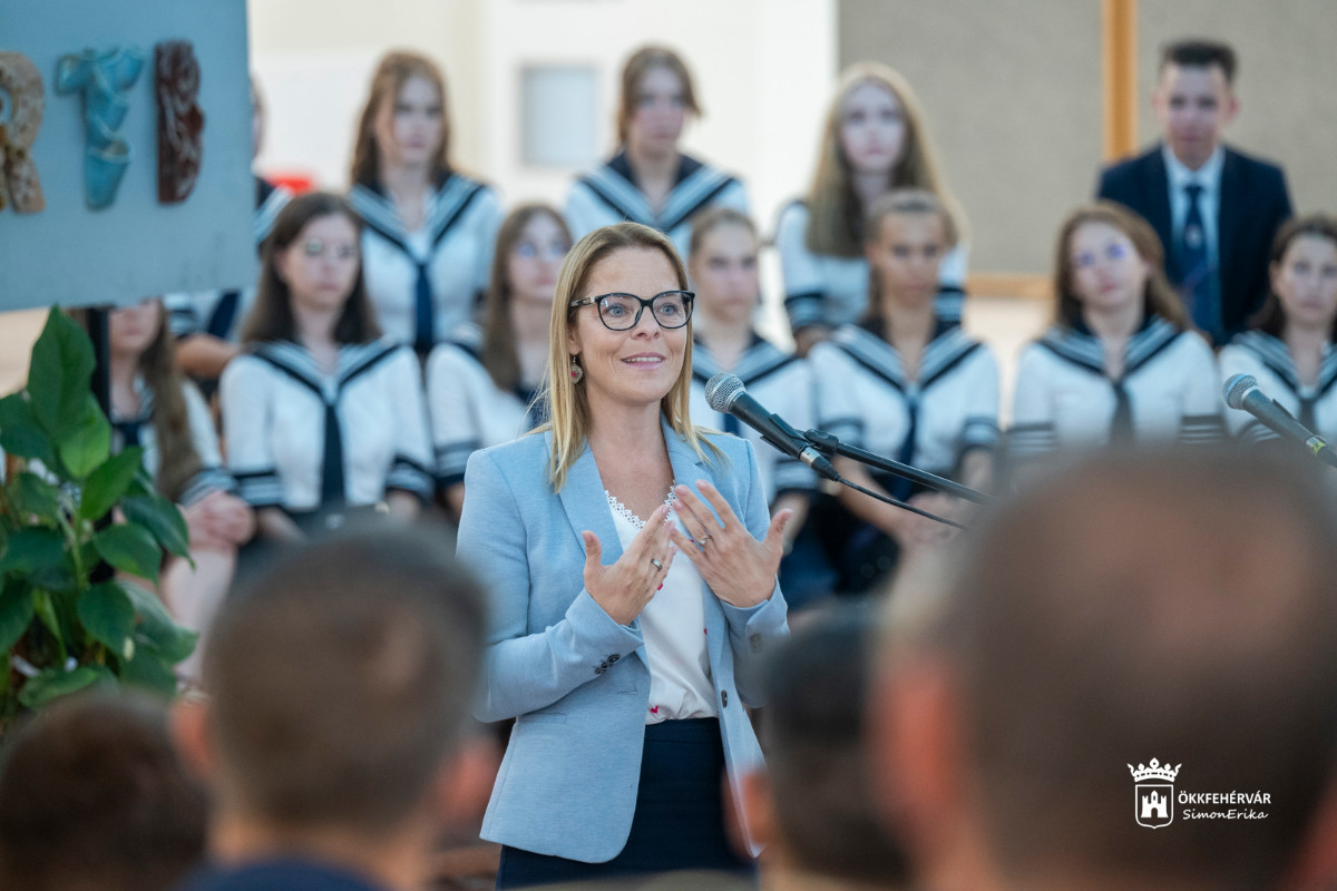 Székesfehérvár Önkormányzata nevében dr. Cser-Palkovics András polgármester mondott ünnepi köszöntőt. „Tanévkezdés alkalmával fontos elmondanunk, hogy hétfőn 1.051 kisdiák kezdi meg a tanulmányait elsősként a városi általános iskolákban, és közel 3.500 fiatal számára indul a középiskola. Köztük sok fehérvári és nem fehérvári is van, így amikor az iskolákról beszélünk, akkor az érinti Székesfehérvárt és az agglomerációt is. Ezért fontos, hogy az intézményeket időről időre felújítsuk, és ha szükség van rá, akkor bővítsük.(…) Fontos elmondanunk, hogy 2022 óta mintegy 30 milliárd forintot költöttünk, és költünk ezekben a hetekben is a fehérvári iskolák felújítására. Ez egy óriási összeg! Köszönet Magyarország kormányának, hiszen a legjelentősebb forrást nyújtotta a Modern Városok Program keretében. Köszönet az európai közösségnek, hiszen az unió is biztosított forrást, és bízom abban, hogy hamarosan azok a támogatások is megérkeznek, melyekből újabb iskolákat tudunk megújítani.”
