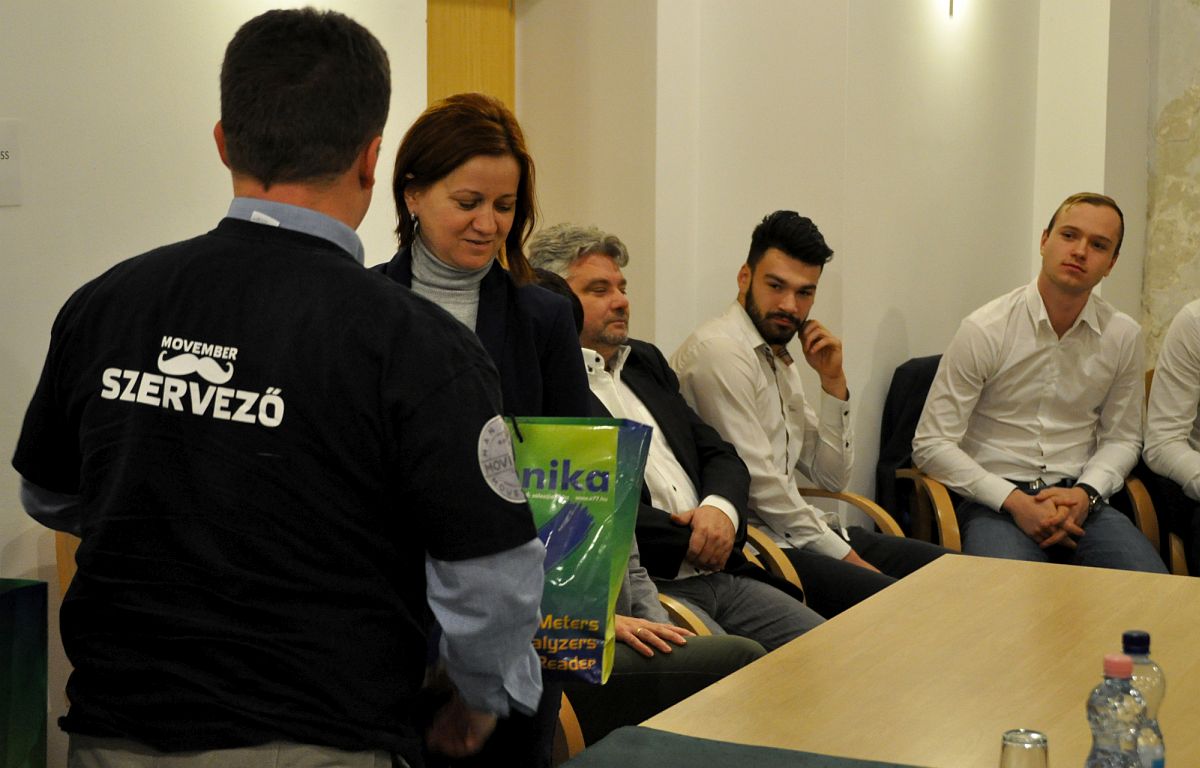 A szerdai tájékoztató keretében került sor a tavalyi „Movember Hungary” rendezvényen összegyűlt adomány átadására is. A tavalyi országos kampány – amelyhez természetesen a székesfehérvári programok is nagyban hozzájárultak – adományából származó PSA mérőműszert a Humán Szolgáltató Intézet kapta meg. A műszert Varga Márta, a Humán Szolgáltató Intézet igazgatója vette át a Movember Fehérvár tagjaitól.