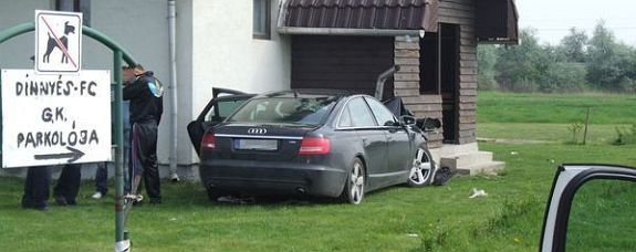 A focipálya öltőzőjébe csapódott a kis faluban a nagy autó