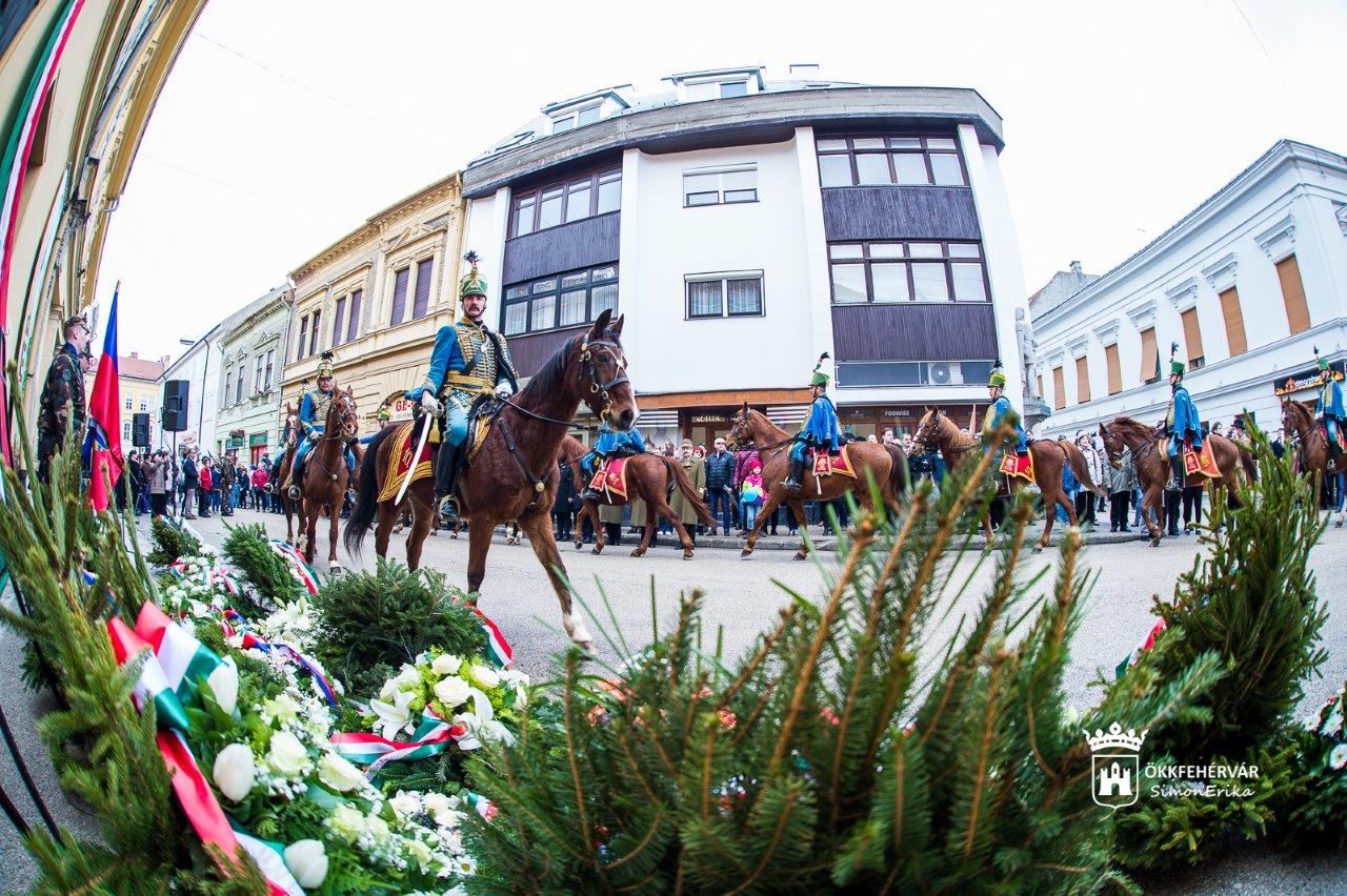 A köszöntőket követően az ünnepség résztvevői a Fekete Sas Szállóhoz vonultak, ahol annak idején a fehérvári márciusi ifjak találkoztak a forradalom napjaiban. Közös koszorút helyezett el Vargha Tamás Székesfehérvár országgyűlési képviselője, a Honvédelmi Minisztérium miniszterhelyettese, Dr. Simon László kormánymegbízott, dr. Molnár Krisztián, a Fejér Megyei közgyűlés elnöke és Cser-Palkovics András polgármester. A Fekete Sasnál pártok, a civil szervezetek és a fegyveres testületek képviselői is megemlékeztek az 1848/49-es forradalom és szabadságharc évfordulójáról.