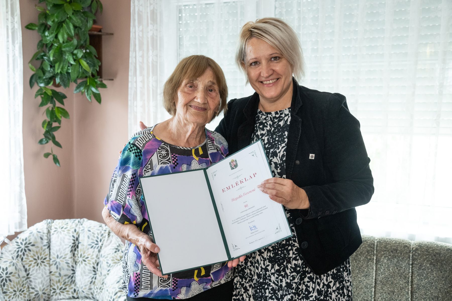 Hegedűs Ferencnét családja körében köszöntötte Székesfehérvár Önkormányzata és polgármestere nevében Deák Lajosné. A városrész önkormányzati képviselője ajándékcsomaggal és a miniszterelnök által aláírt emléklappal lepte meg az ünnepeltet.
