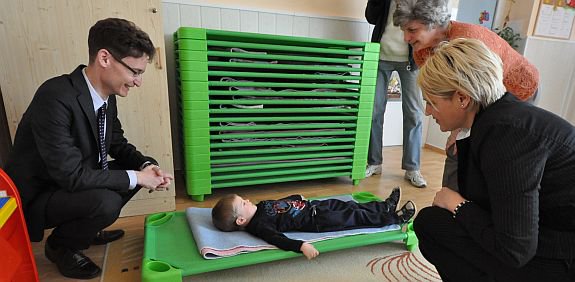 Ferencsik Józsefné bölcsődevezető elmondta, hogy új csoportszobákat és hozzájuk tartozó kiszolgáló helységeket alakítottak ki és megújult a játszóudvar is. A meglévő épületben is számos felújítás történt, többek között a nyílászárókat is kicserélték. Az intézményvezető köszönetet mondott a 14 db szobai altatáshoz használt fektetőágy beszerzéséért, és örömmel számolt be arról, hogy az ágyak könnyűek, jól tisztán tarthatók, így megkönnyítik a technikai személyzet munkáját, s nem utolsó sorban kényelmesek és elősegítik a gyermekek pihentető alvását.