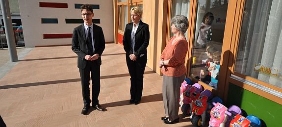 A polgármester és Deák Lajosné önkormányzati képviselő ma délelőtt ellátogatott a Gyöngyvirág Óvodába is, ahol az intézményvezető, Halmai Tamásné mutatta be az óvodát: Óriási – 2 hektáros – terület övezi a „gyermekparadicsomnak” nevezhető intézményünket. Tizenöt csoportunkkal városunk legnagyobb óvodája vagyunk. Saját kimunkálású helyi programmal dolgozunk, olyan speciális elemekkel dúsítva, mint német nemzetiségi-, illetve autista program. Pedagógiai munkánk súlypontjai: az egészséges életvitel megalapozása, a szocializáció, a környezettudatos nevelés és az anyanyelvi nevelésen alapuló értelmi nevelés.