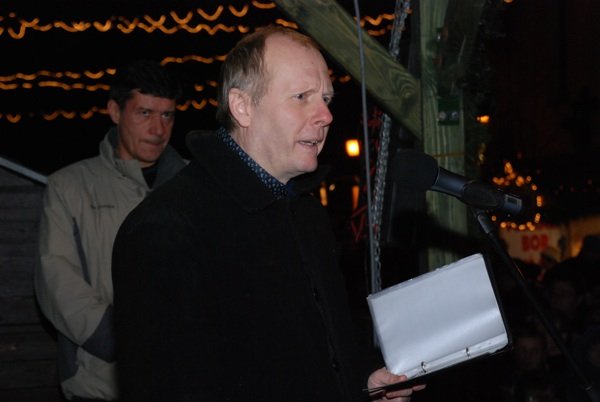 A harmadik adventi városi ünnepségen Bencze András evangélikus lelkész és dr. Gógl Árpád országgyűlési képviselő gyújtotta meg a gyertyát a növekvő fényt szimbolizáló koszorún. Bencze András ünnepi beszédében kiemelte, nem igaz az, hogy eltűnt az emberekből a szeretet iránti vágyakozás, hiszen csak körül kell nézni a Városház téren, hogy milyen sokan jöttek el a gyertyagyújtásra.