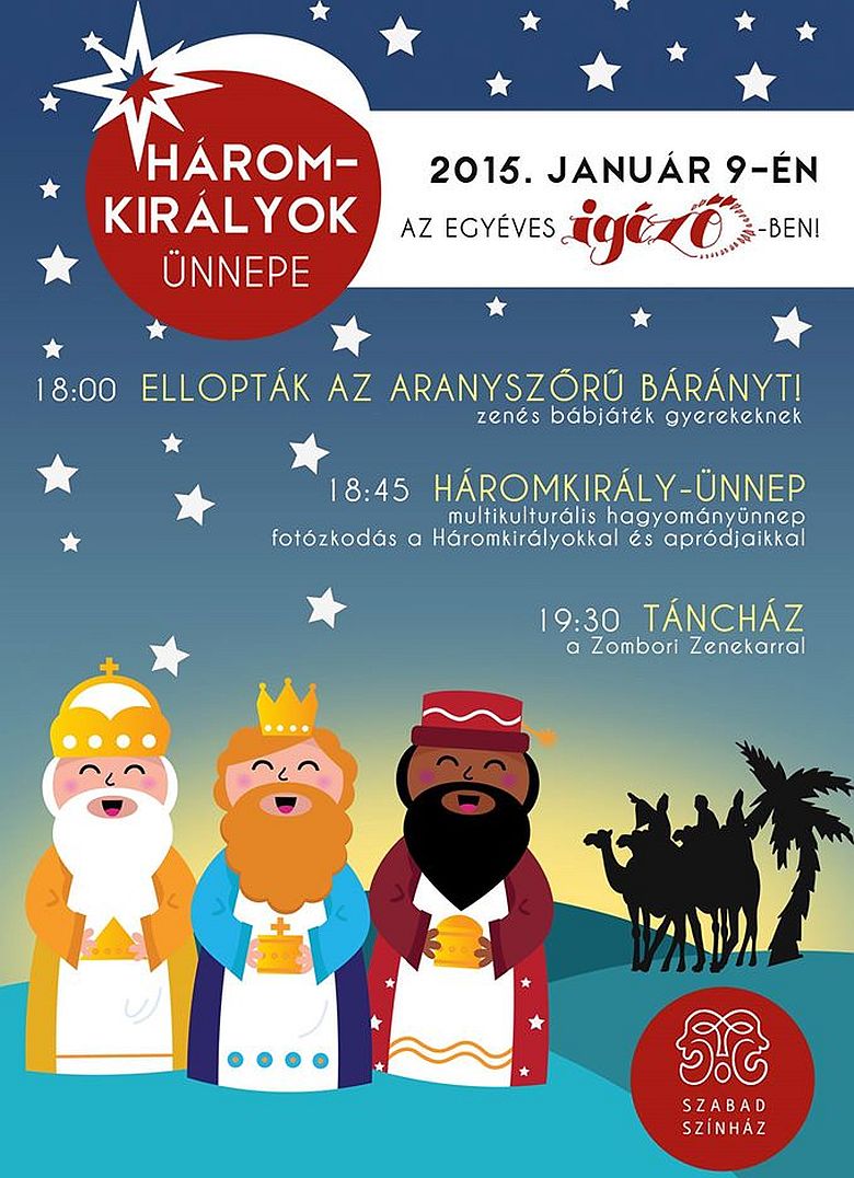 18:45 - Háromkirály-ünnep: multikulturális hagyományünnep, fotózkodás a három királyokkal és apródjaikkal.