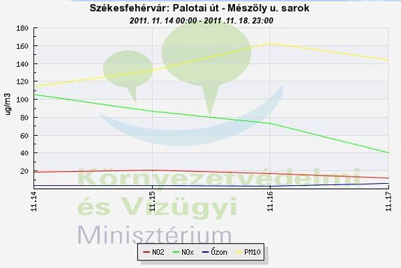Pénteken estére a szerdaihoz képest mintegy felére csökkent a szállópor koncentrációja Székesfehérváron, azonban még mindig magas a levegő szennyezettsége. A Mészöly Géza utca és a Palotai út kereszteződésében található légszennyezettségi mérőállomás adatai szerint pénteken kora este már 89µg/m3 volt a szállópor koncentráció míg szerdán délelőtt a 200-as értéket is meghaladta. Az időjárás előrejelzés szerint a következő napokban marad a ködös, párás és borongó idő, mely kedvez a légszennyező anyagok feldúsulásának.